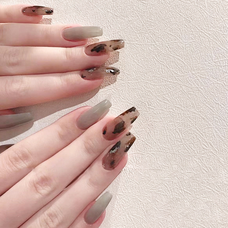 穿戴甲琥珀金箔晕染假指甲中长款芭蕾美拉德显白美甲专用甲片