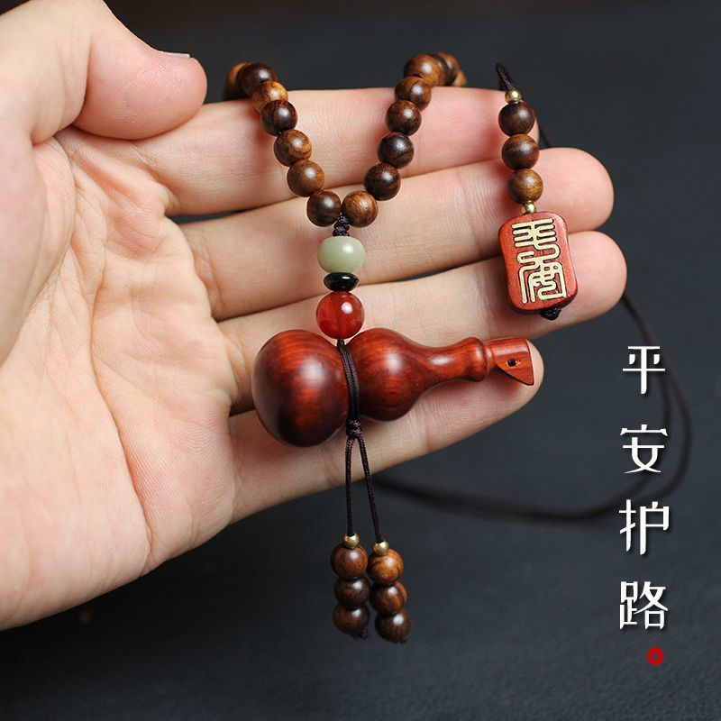 高档汽车挂件檀木桃木葫芦车内饰吊坠出入平安符车载后视镜挂饰品