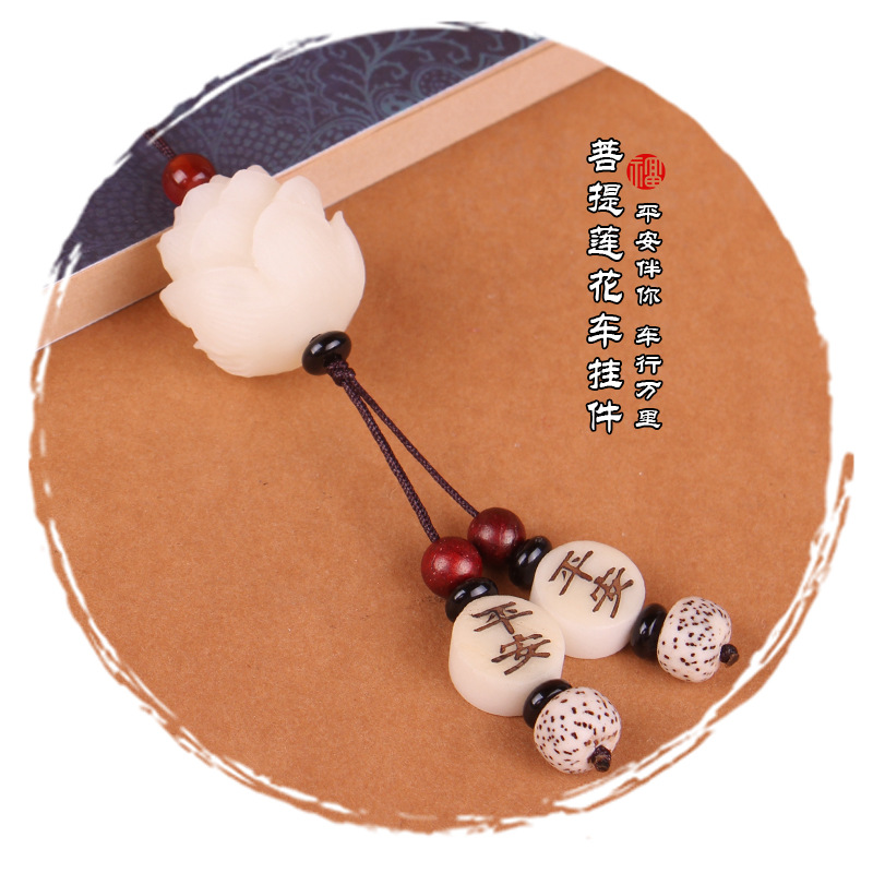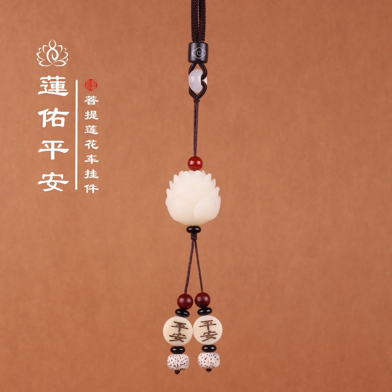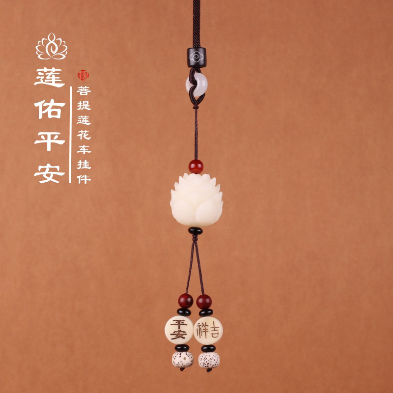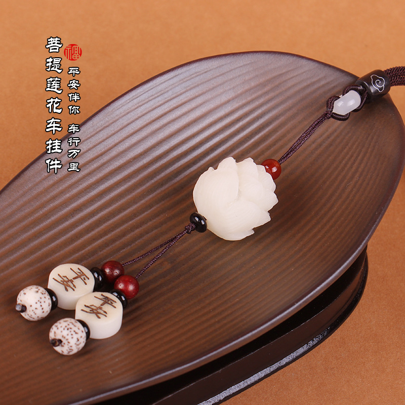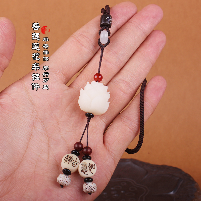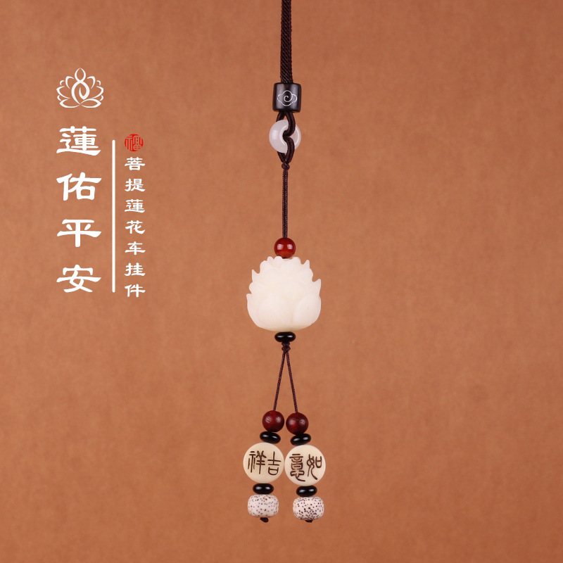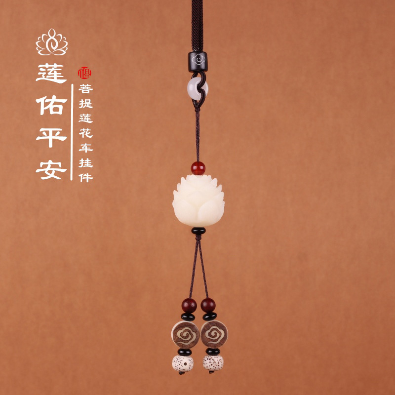 天然白玉菩提莲花挂饰车内车载后视镜吊坠手工饰品平安符汽车挂件