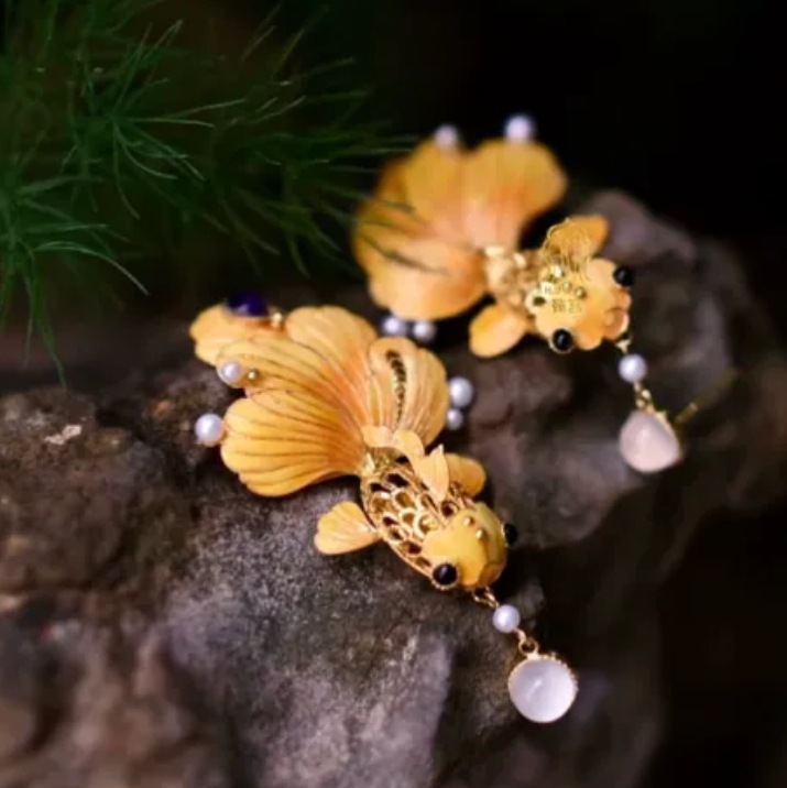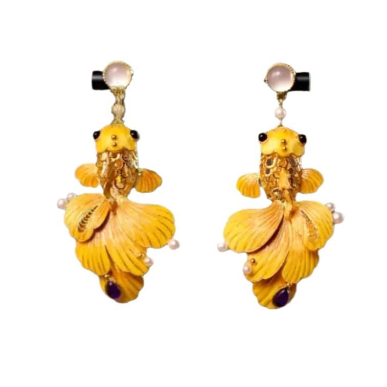 新中式锦鲤耳钉<年年有余>古法国潮流苏耳坠复古民族风耳饰品耳环