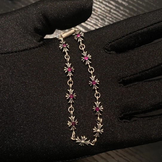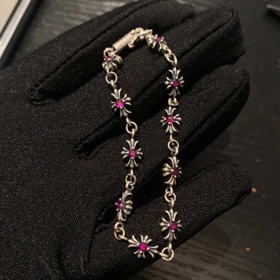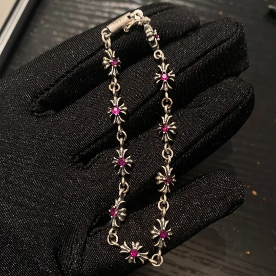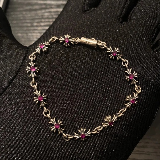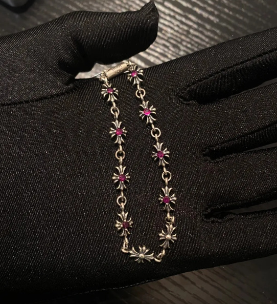十字架轻奢手链玫色锆石手串情侣个性十字花复古手饰品百搭高级感