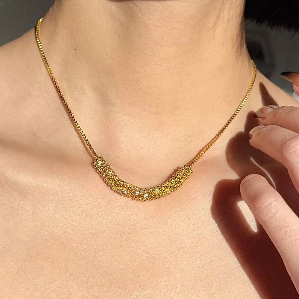 BV风项链轻奢圆珠闪锆麦穗吊坠锁骨链高级感时尚百搭新款颈链
