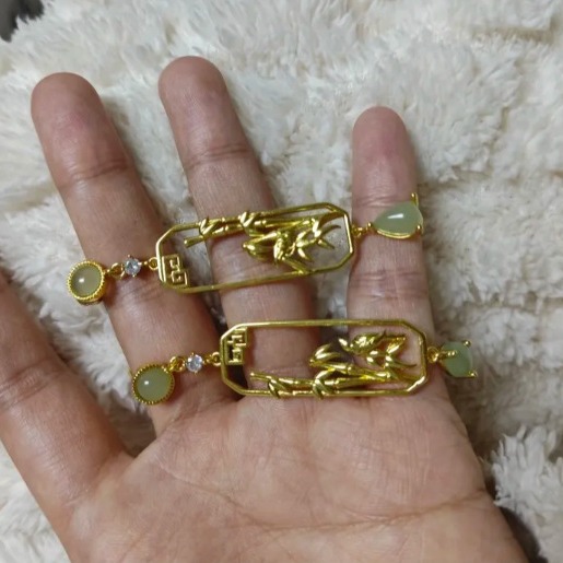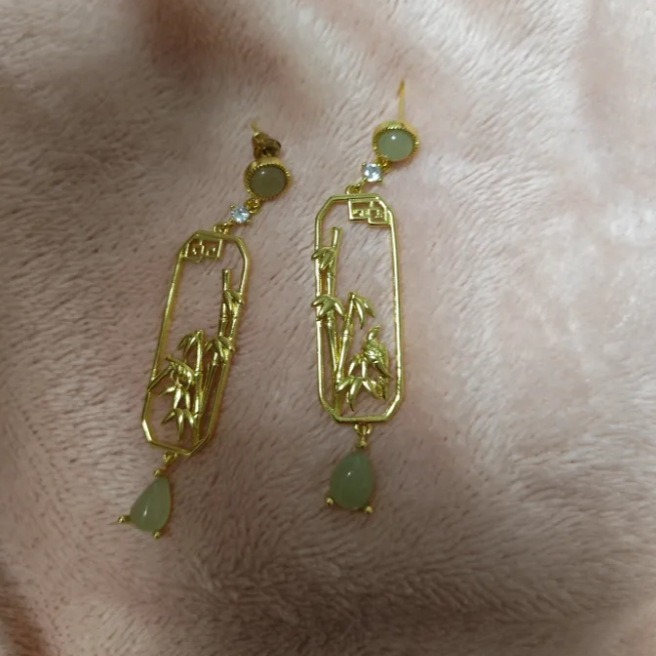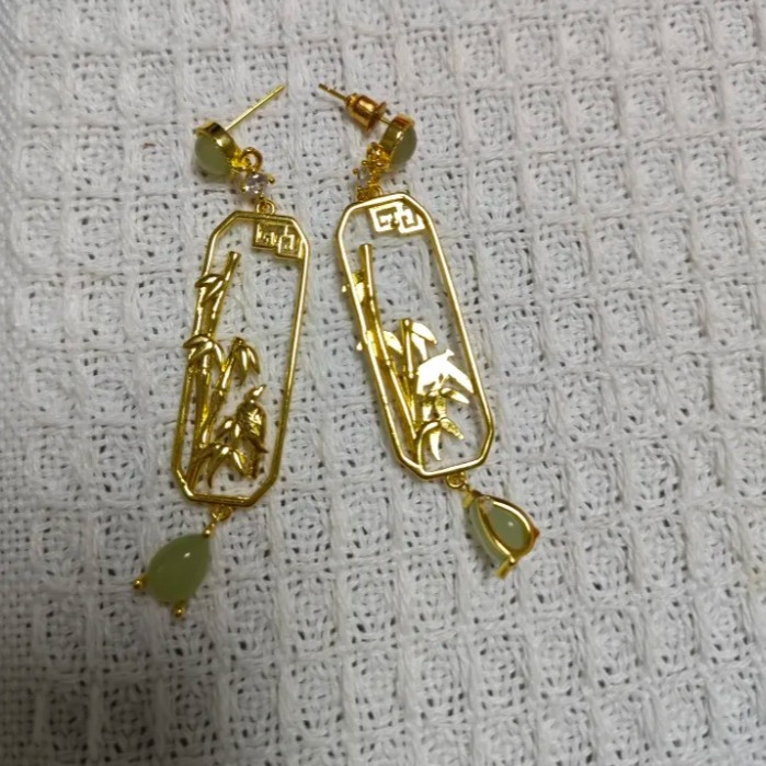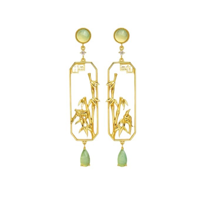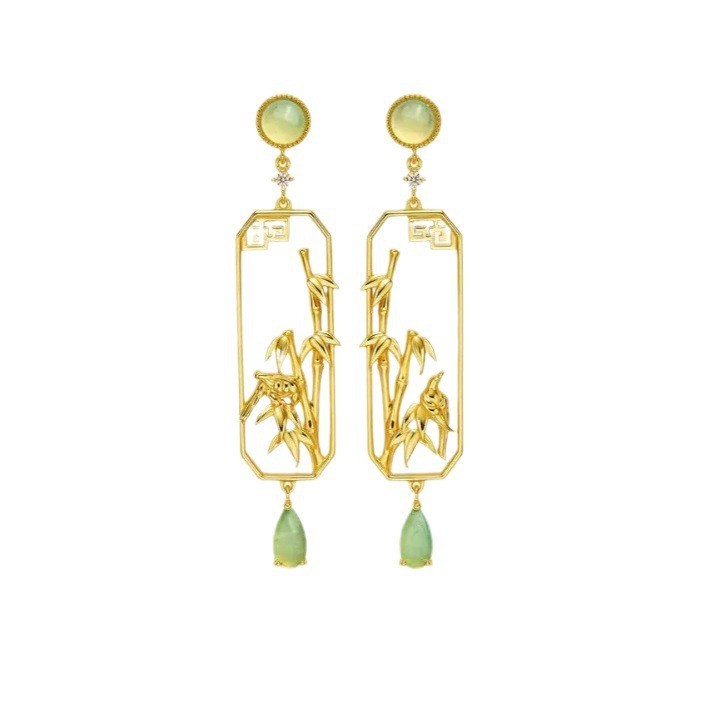 国潮中国风竹报平安水滴锆石耳坠时尚复古耳钉百搭耳饰品精致耳环