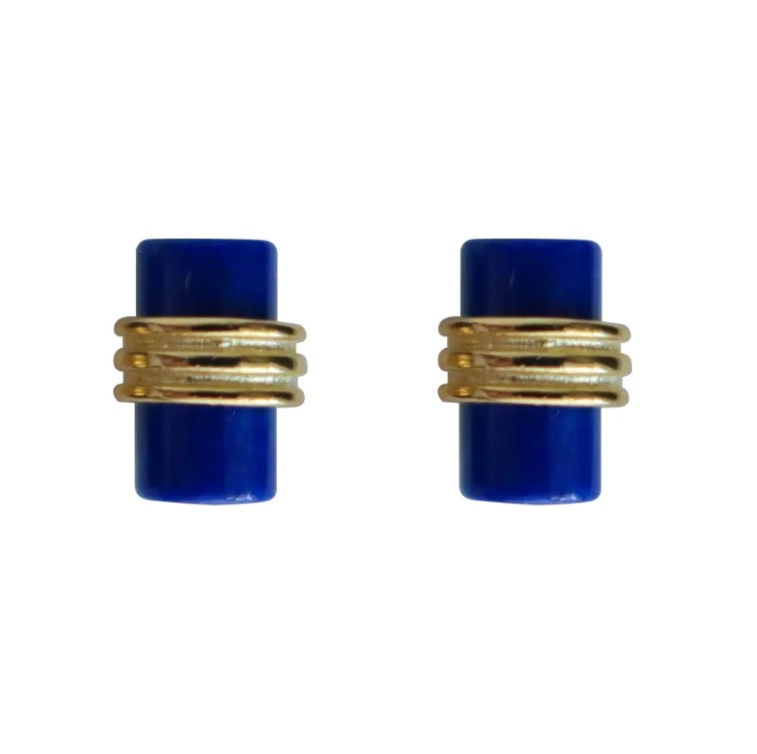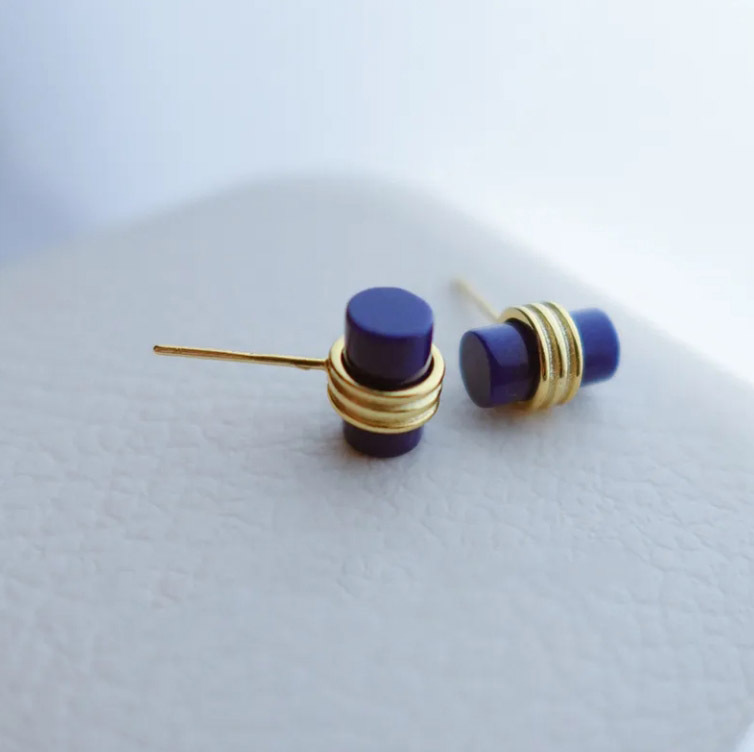 小众简约风圆柱青金石耳钉高颜值百搭耳环时尚轻奢气质耳饰品耳坠