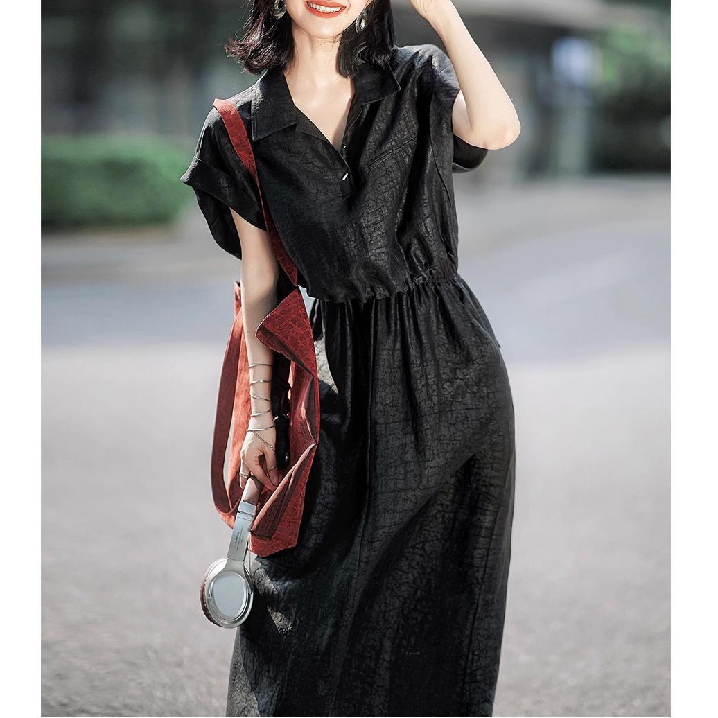 真的是太美了~气质显瘦连衣裙2025夏季女龟裂纹假两件长裙
