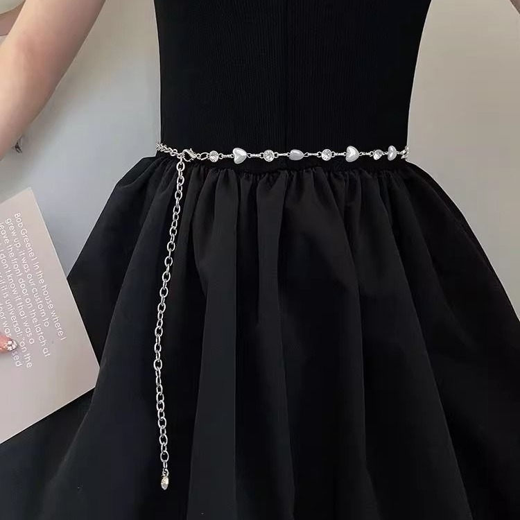 腰带女夏季新款高级感爱心珍珠腰链装饰百搭配连衣群小众水钻皮带