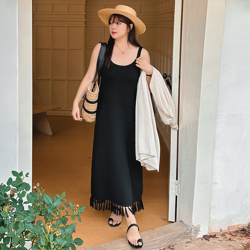 大码女装内搭背心裙女流苏裙春胖mm显瘦遮肉针织连衣裙