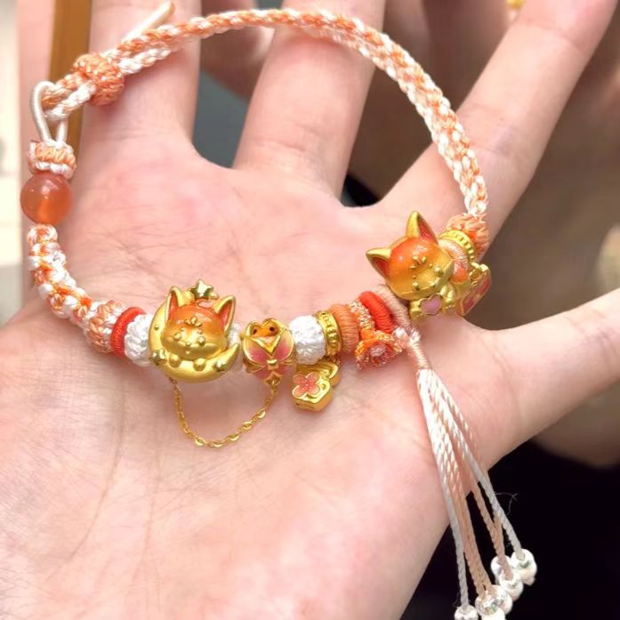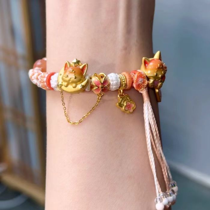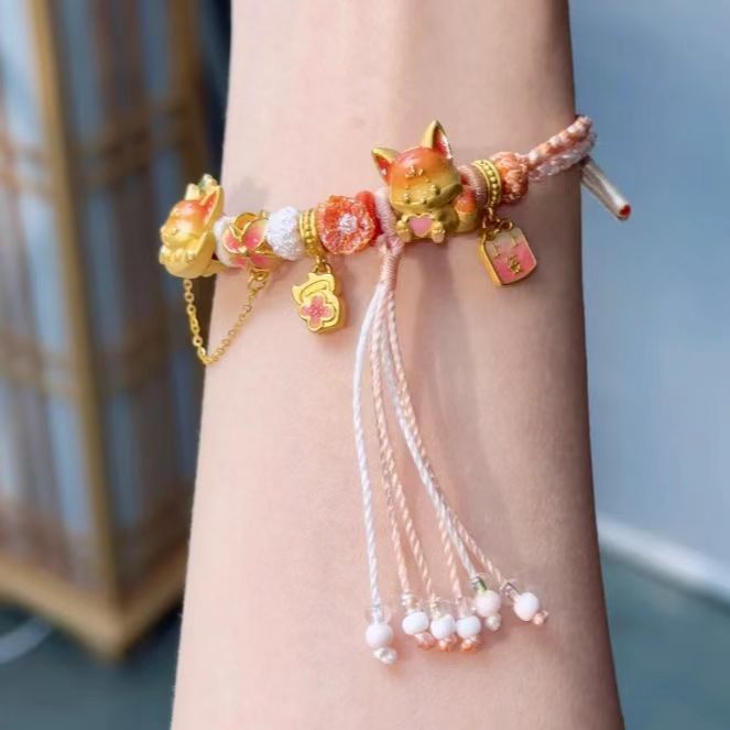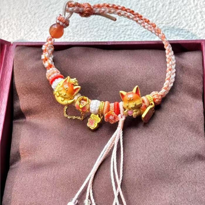 新中式小火狐挂坠转运珠狐狸流苏手绳可爱高颜值手链古法小众手串