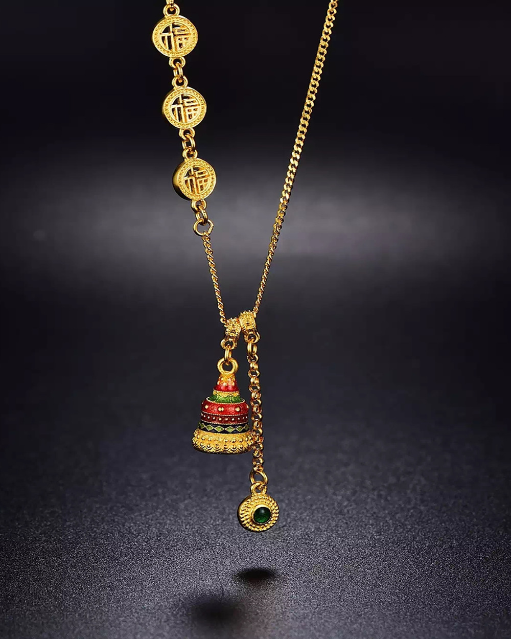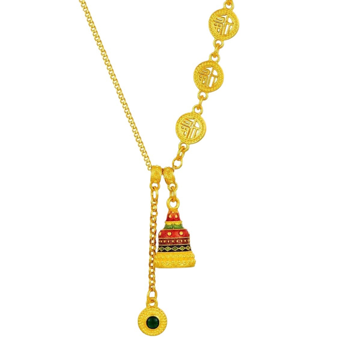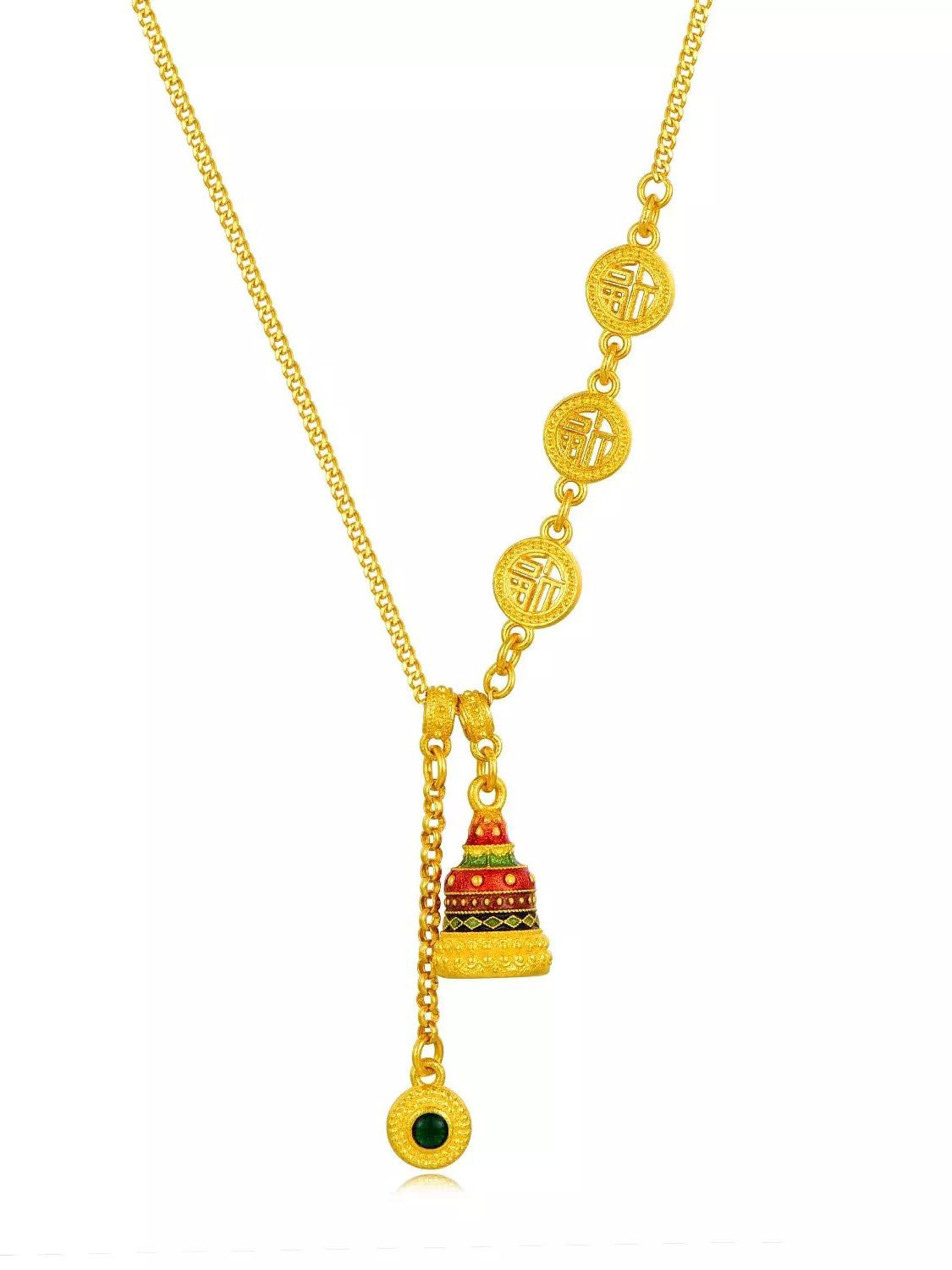 古法国潮新中式满福许愿塔项链珐琅工艺吊坠复古风套链时尚锁骨链