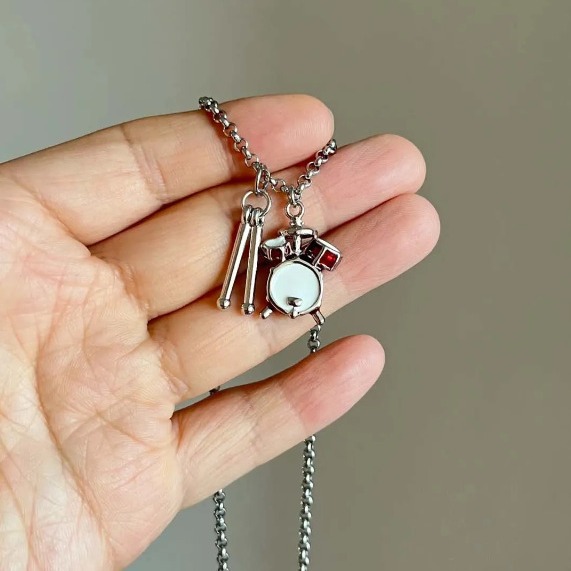 个性摇滚风~架子鼓~吊坠项链情侣时尚轻奢锁骨链小众百搭卫衣颈链