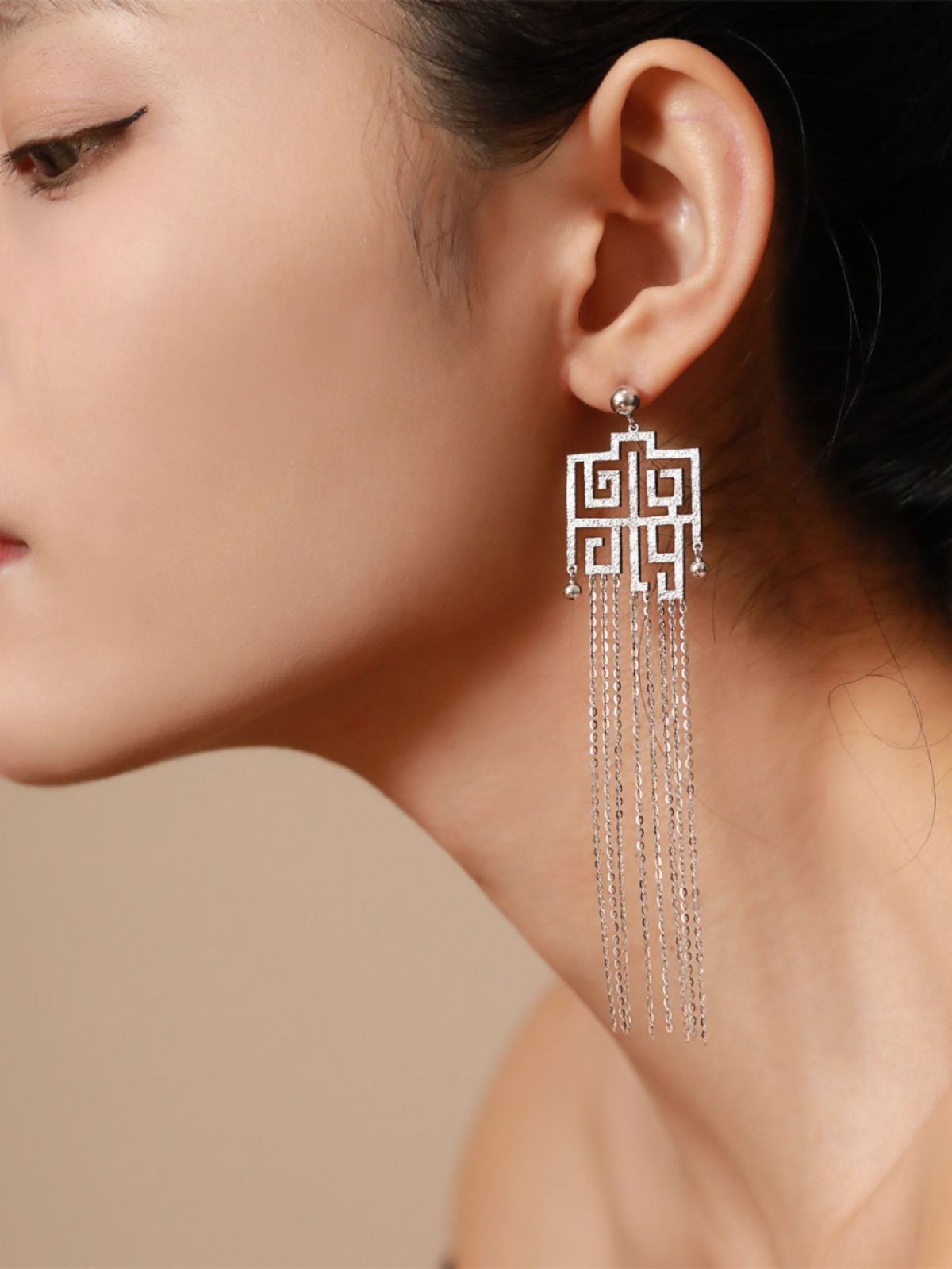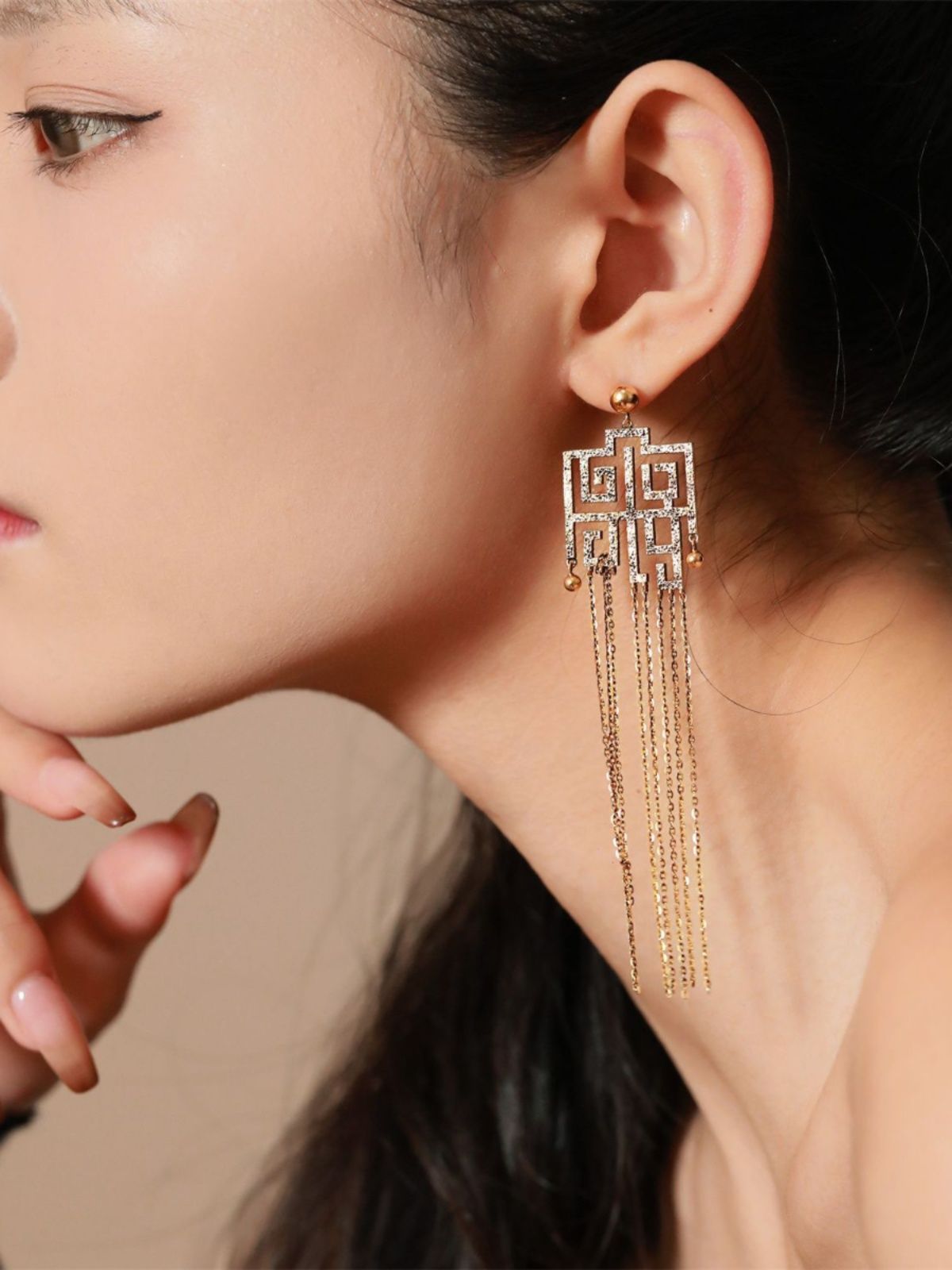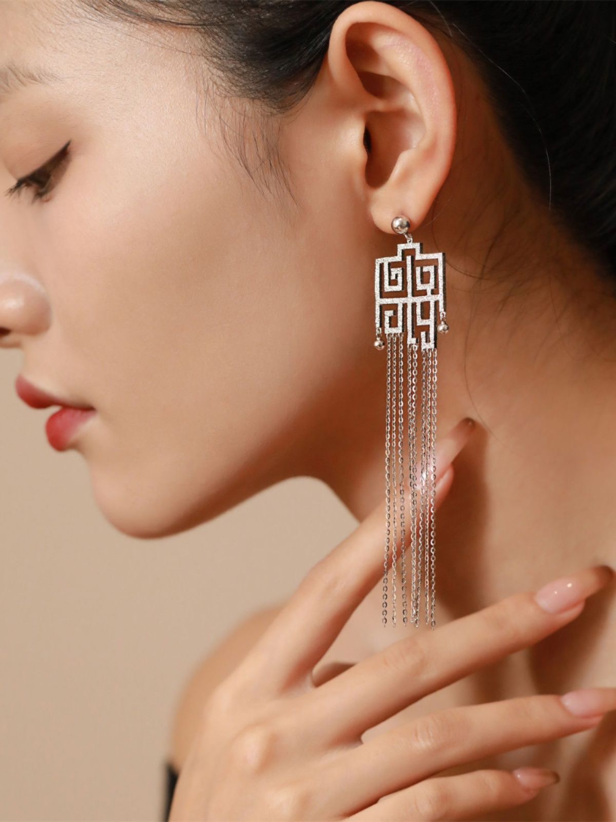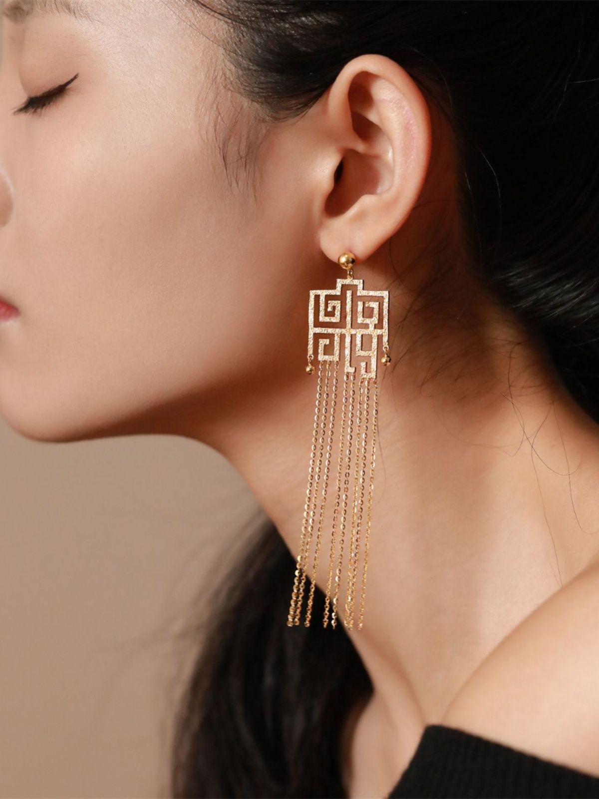 经典国潮新中式流苏耳线时尚百搭高级感耳饰新款耳钉轻奢耳钩