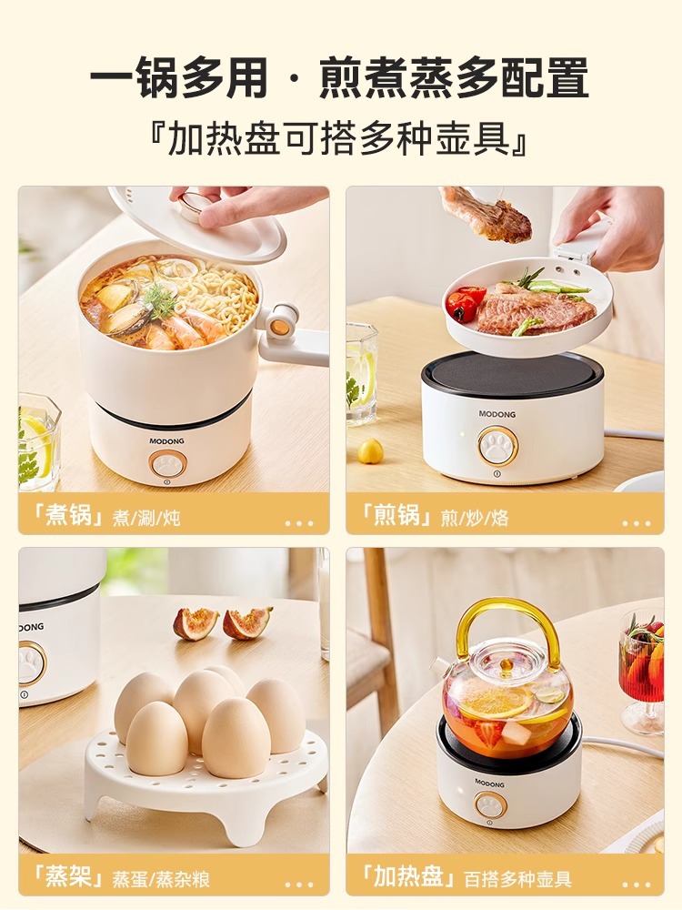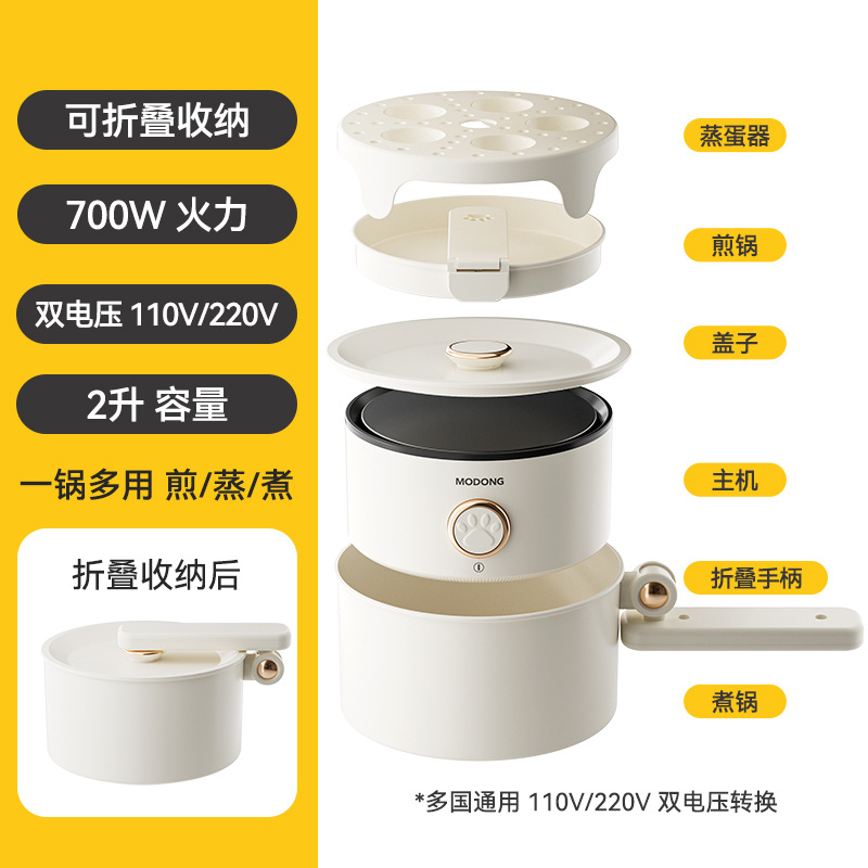 折叠锅【配煮锅+煎锅+蒸蛋架】【110V-220V电压可用】
