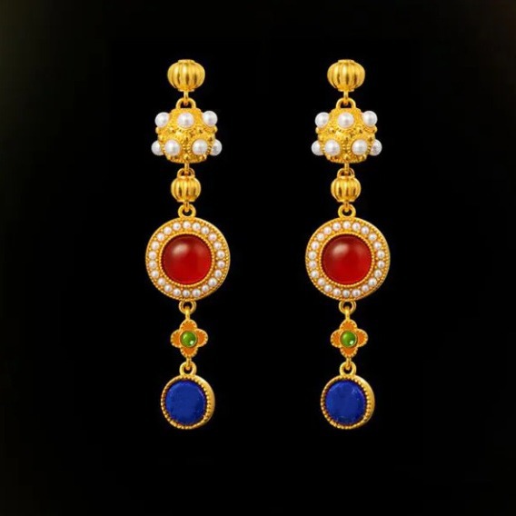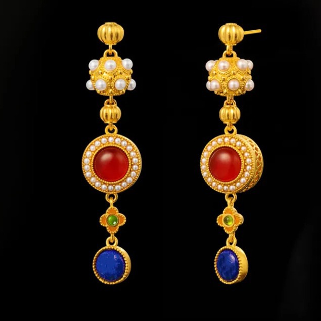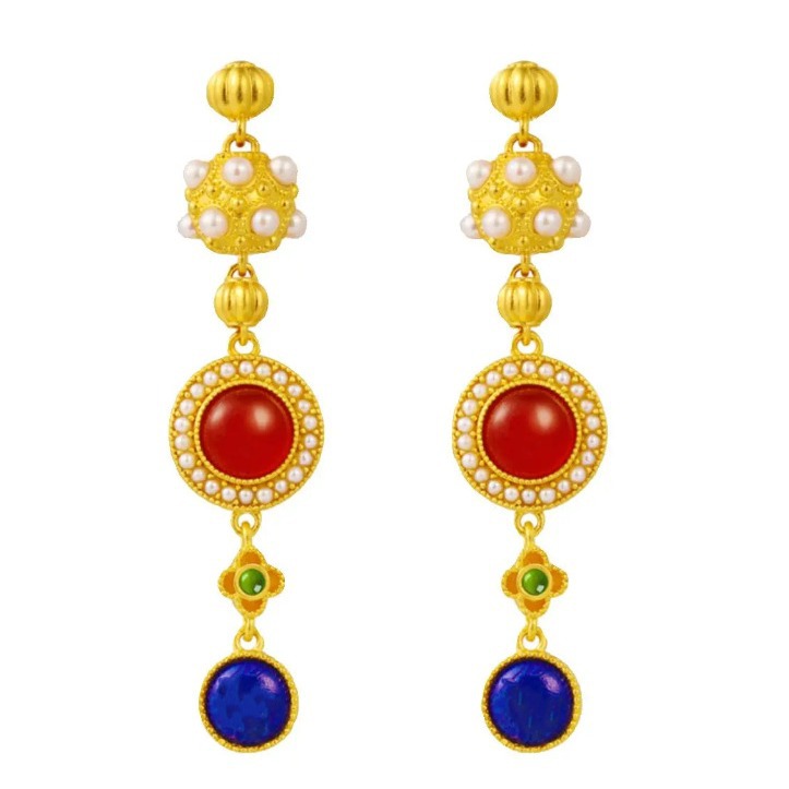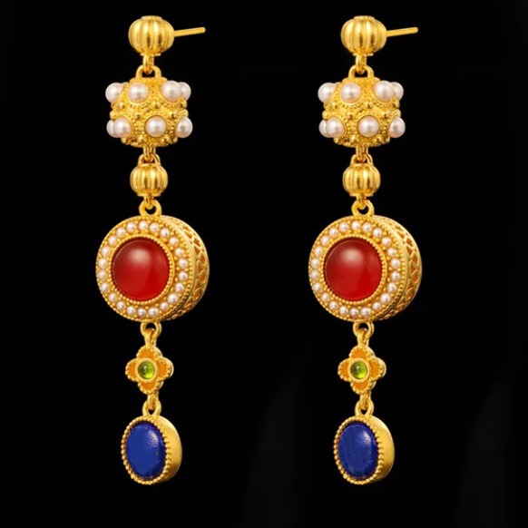 古法工艺隋朝兰陵公主耳饰花丝青金石耳钉复古气质优雅耳坠耳饰品