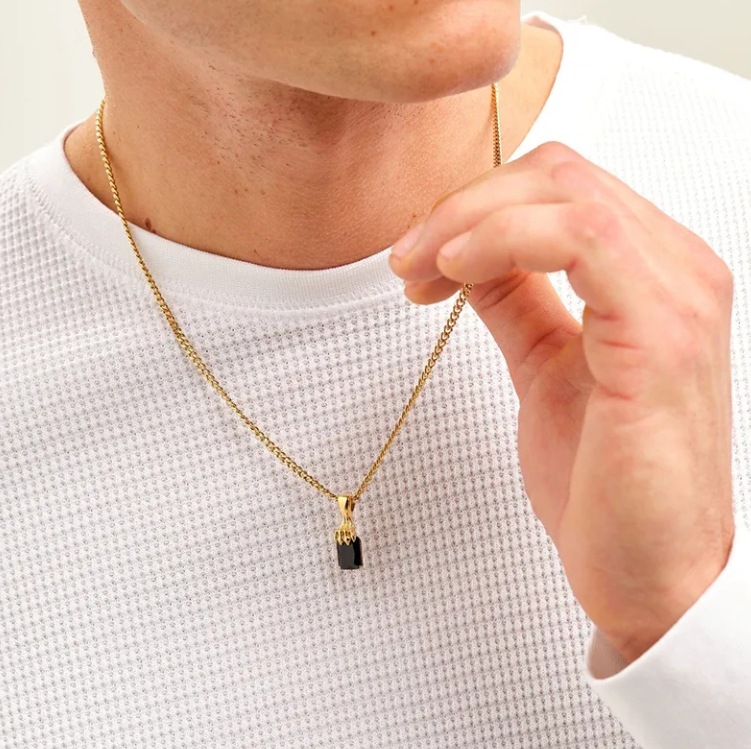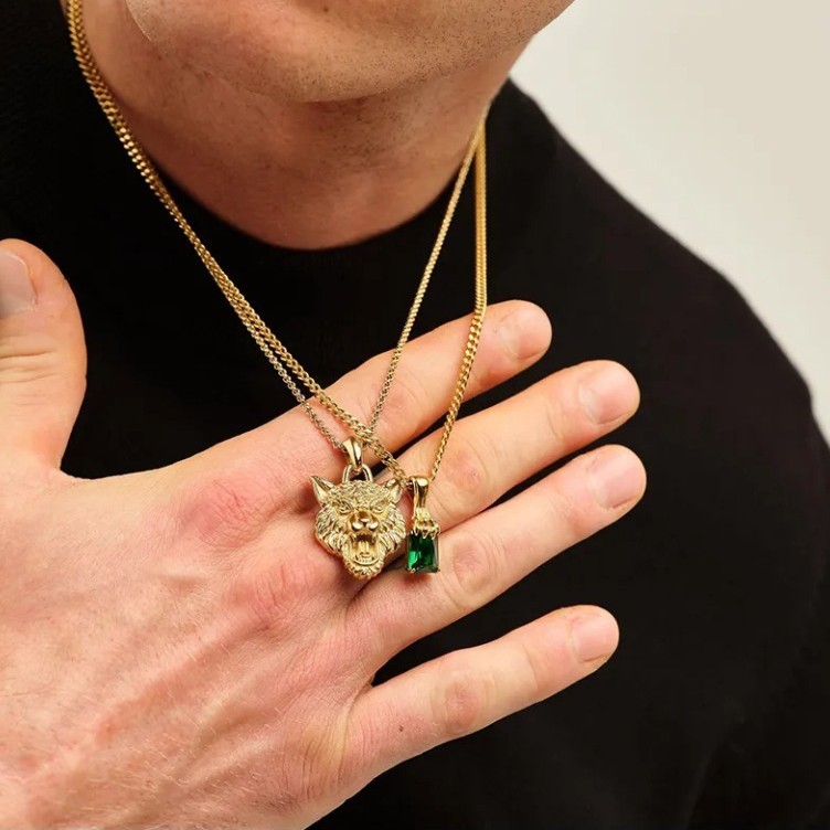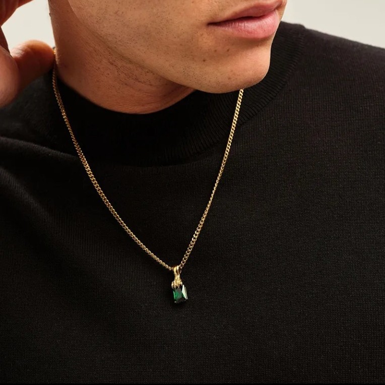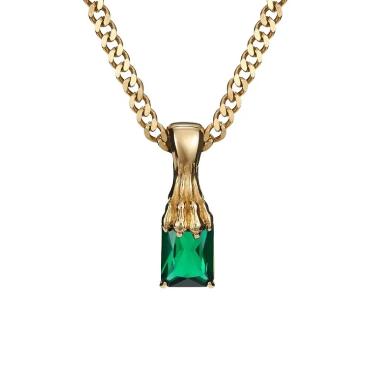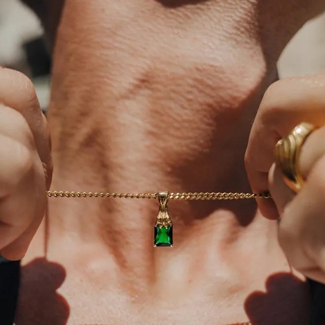 不规则美式潮流方形绿水晶吊坠项链小众轻奢挂坠颈链高颜值卫衣链