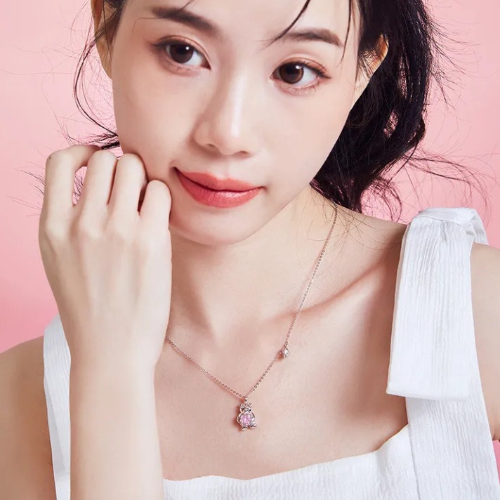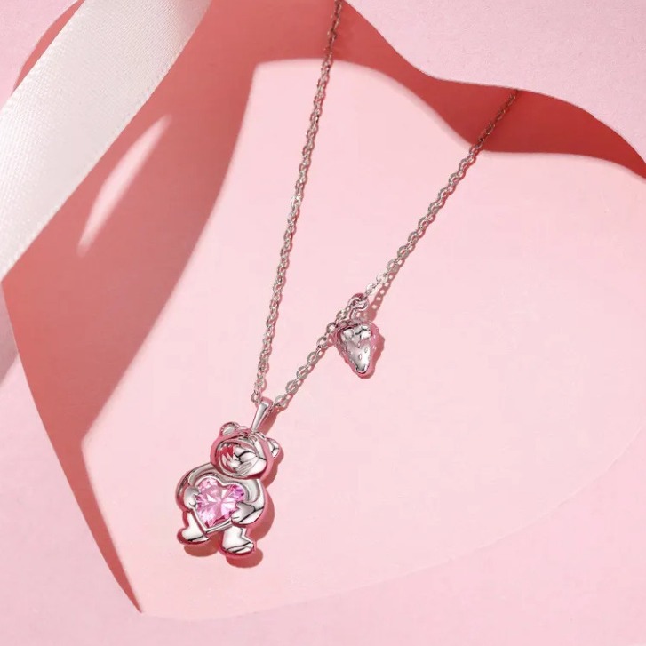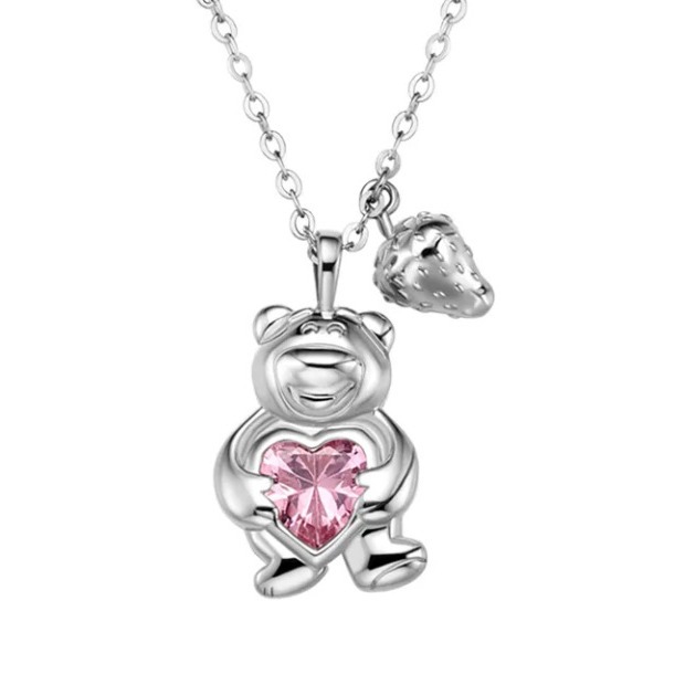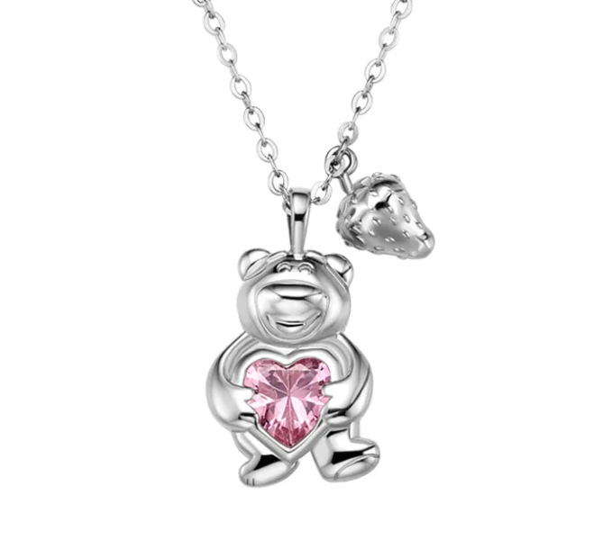 可爱卡通~草莓熊~爱心锆石吊坠项链轻奢高颜值锁骨链小众百搭颈链