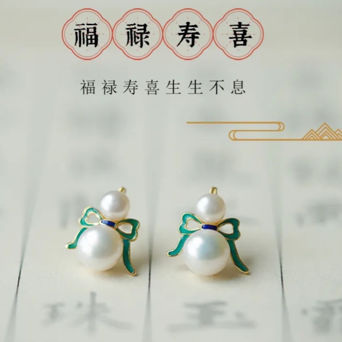 《福禄》古法国潮葫芦耳钉时尚中国风气质耳环简约轻奢优雅耳饰品