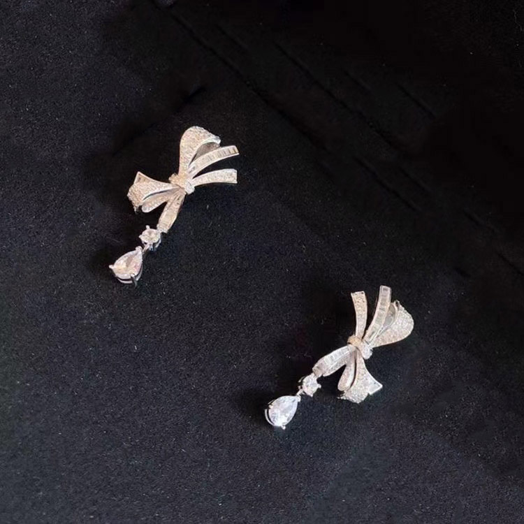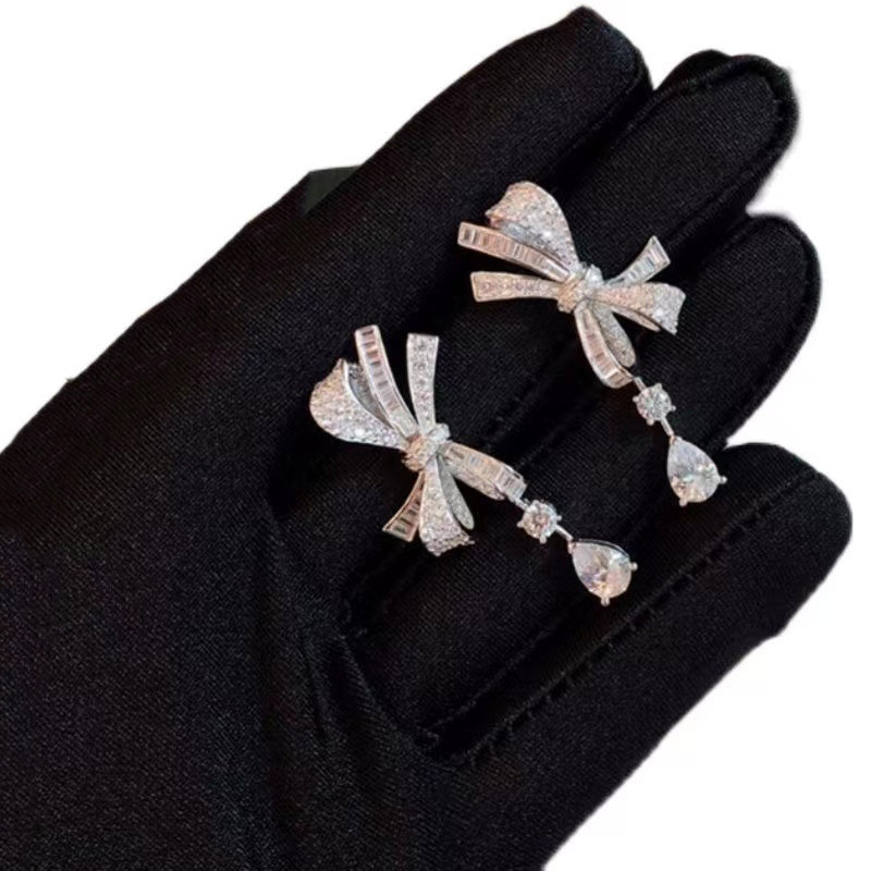 时尚仙女气质蝴蝶结耳钉高级感宴会时尚水滴锆石耳环轻奢满锆耳饰