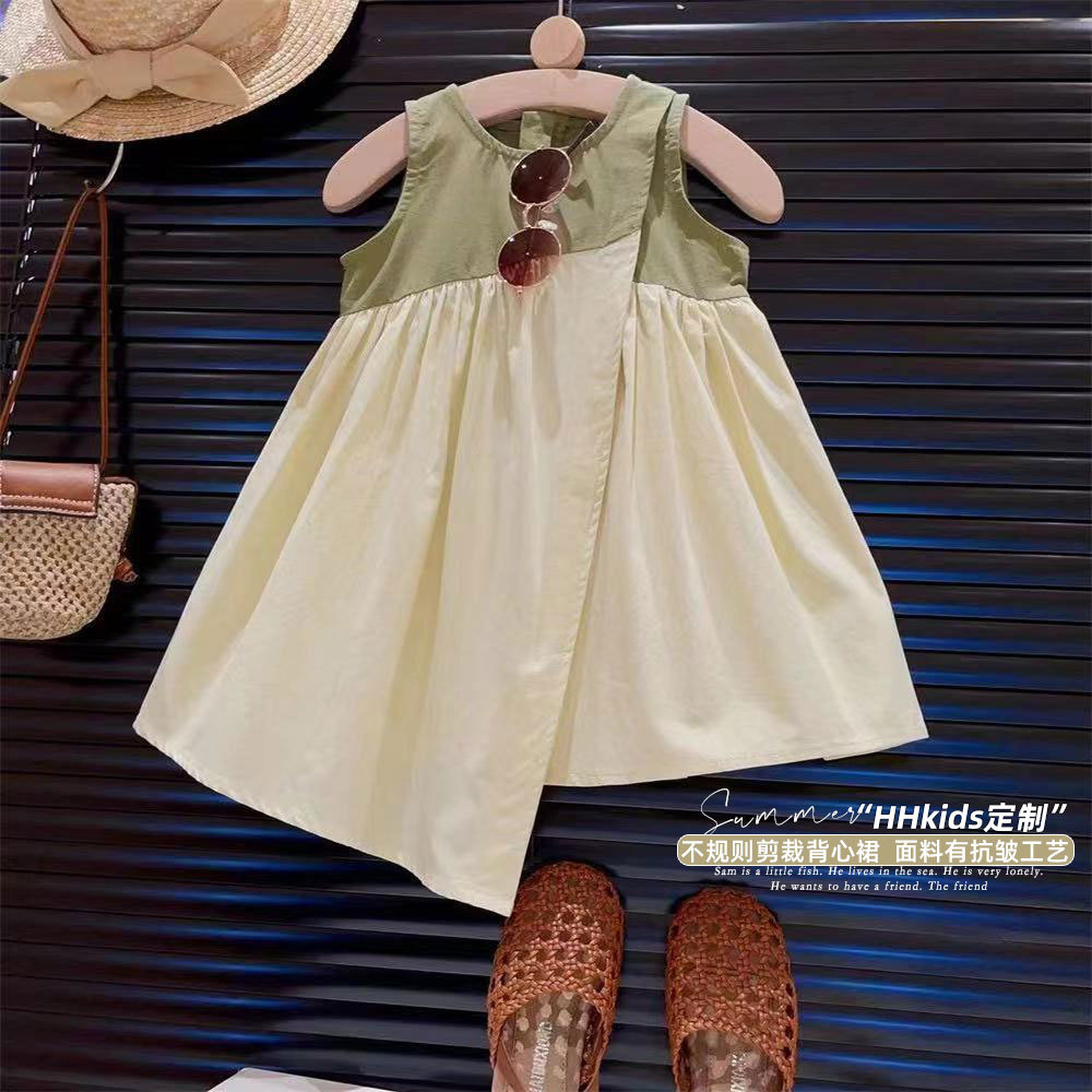 新品女童不规则撞色裁剪拼接个性洋气公主背心裙2025夏装连衣裙