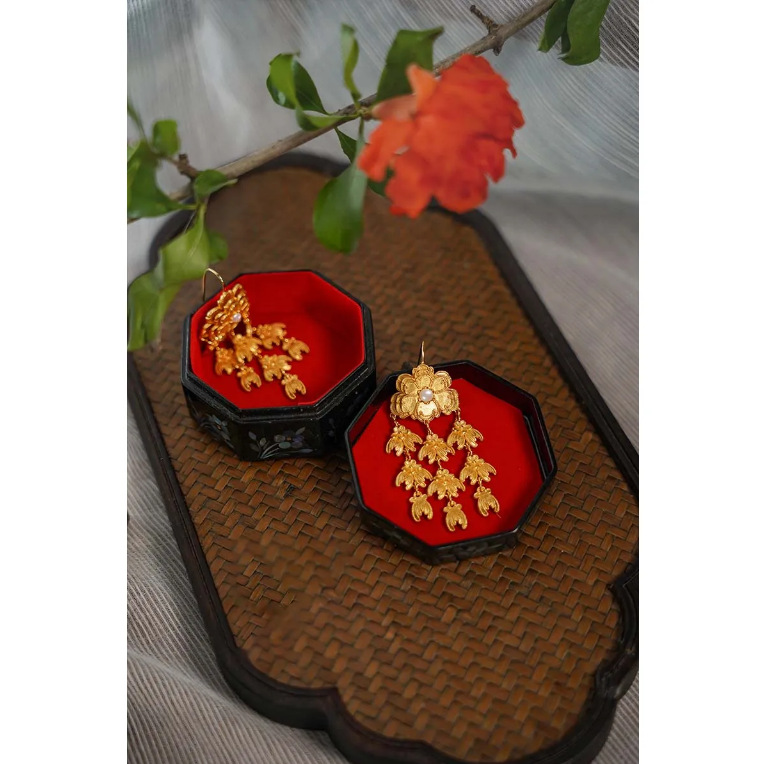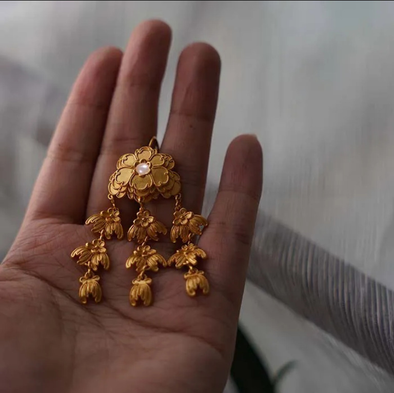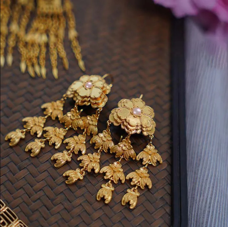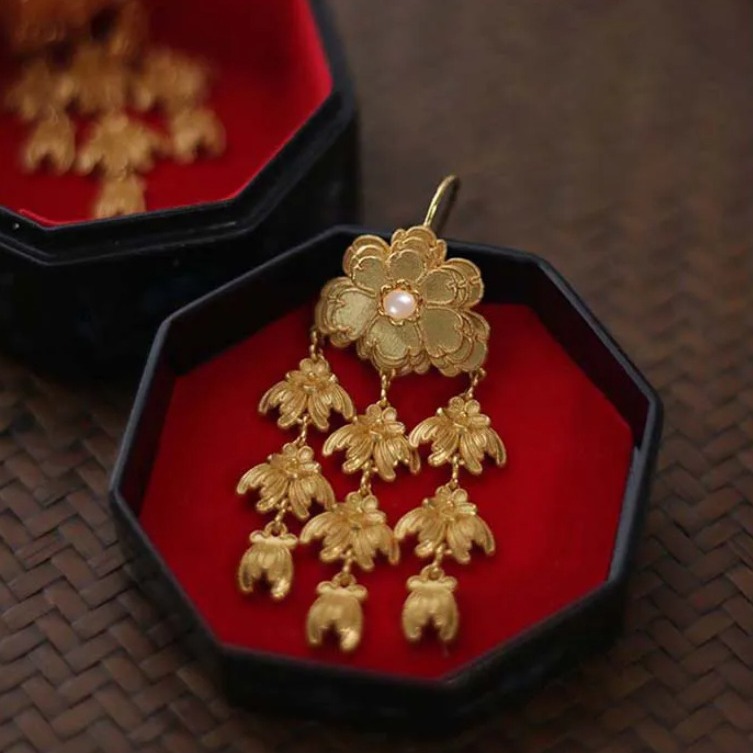 国潮古法海藻花卉珍珠流苏耳钉时尚中国风耳坠复古百搭汉服耳饰品