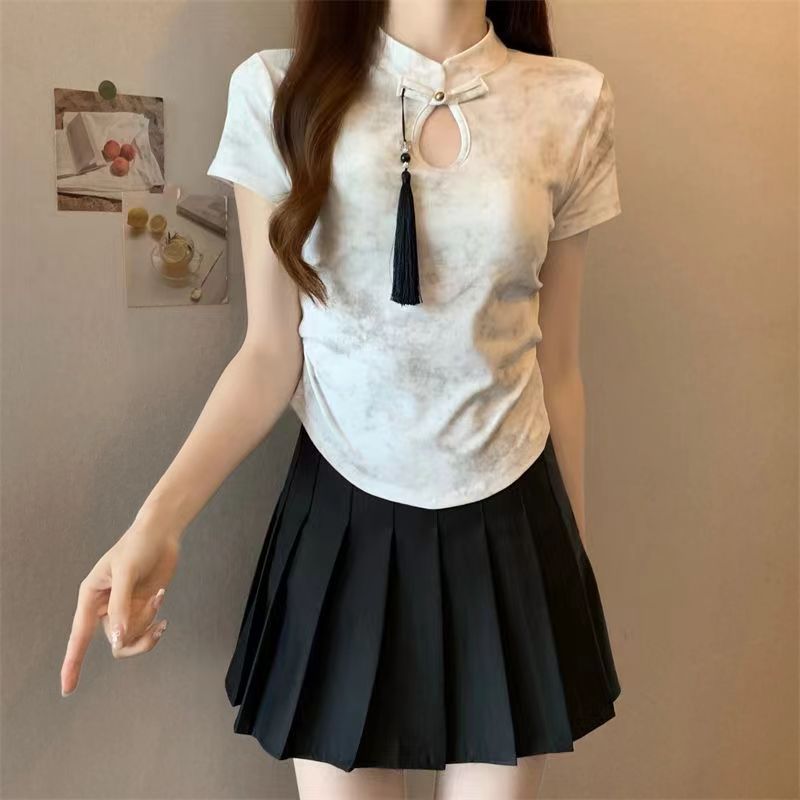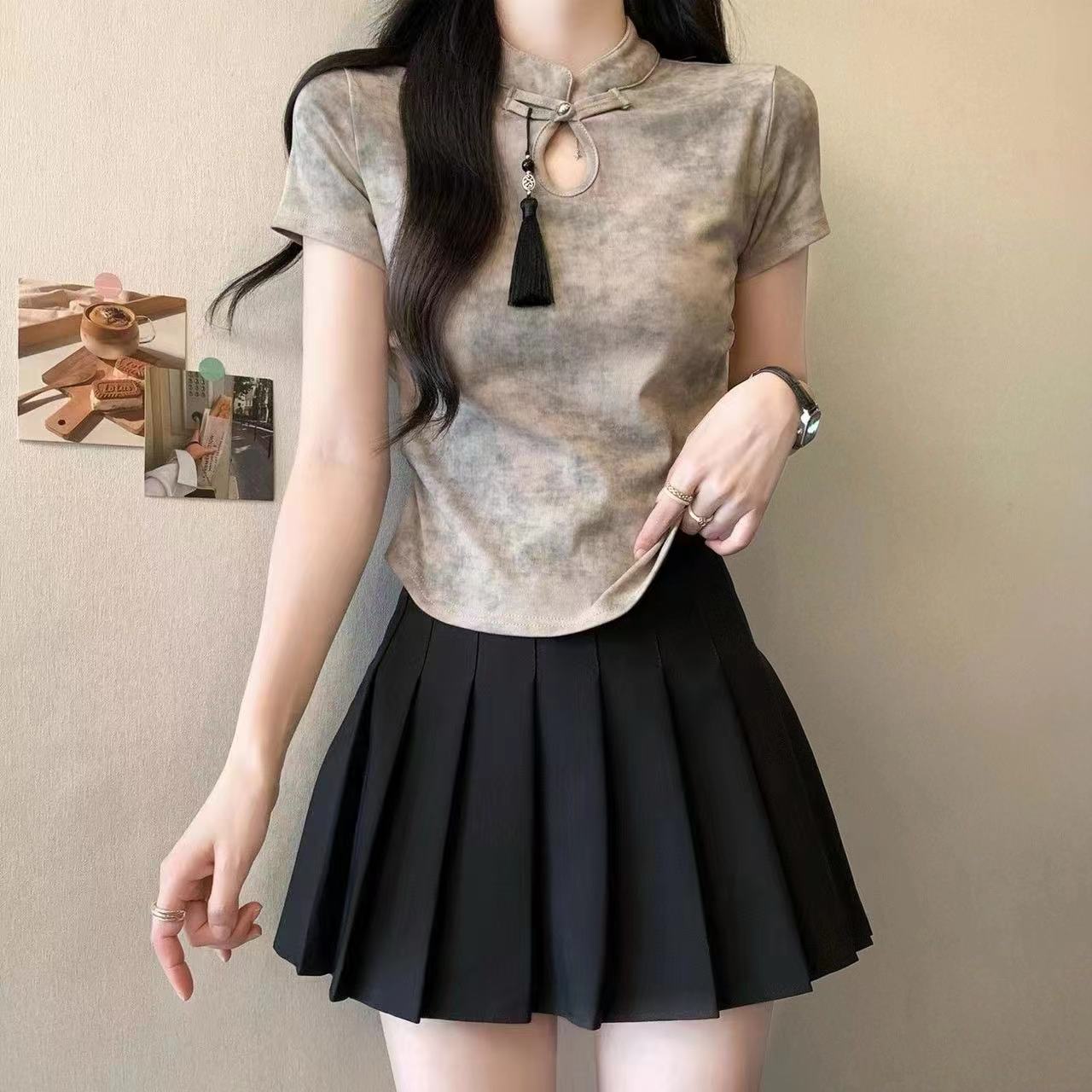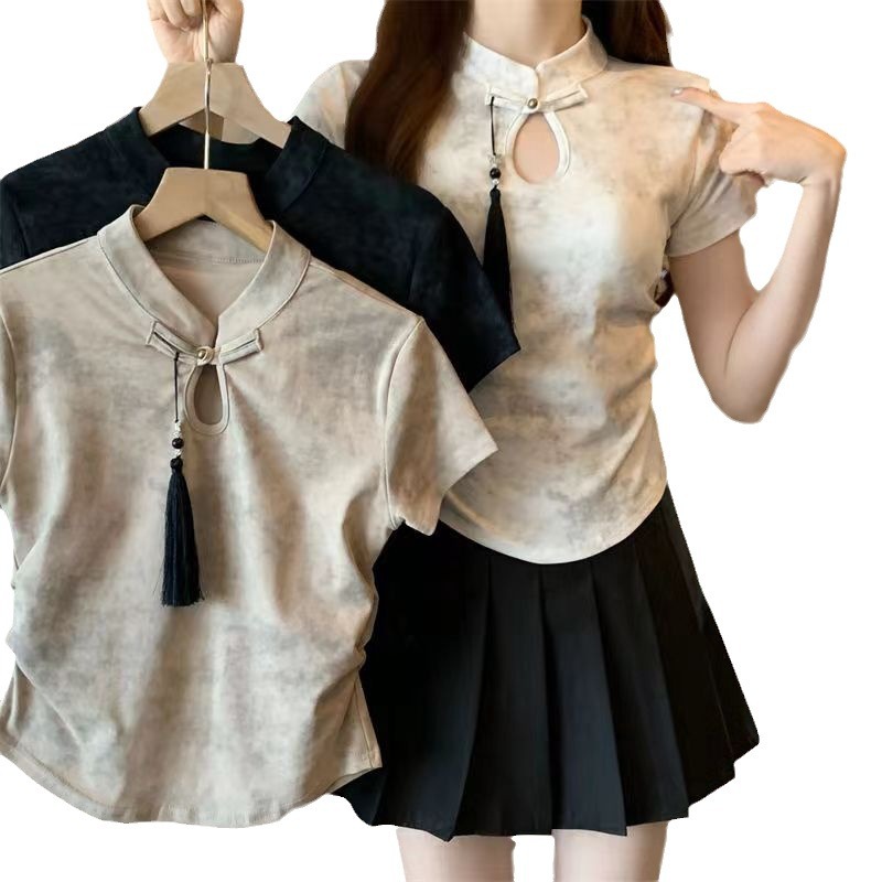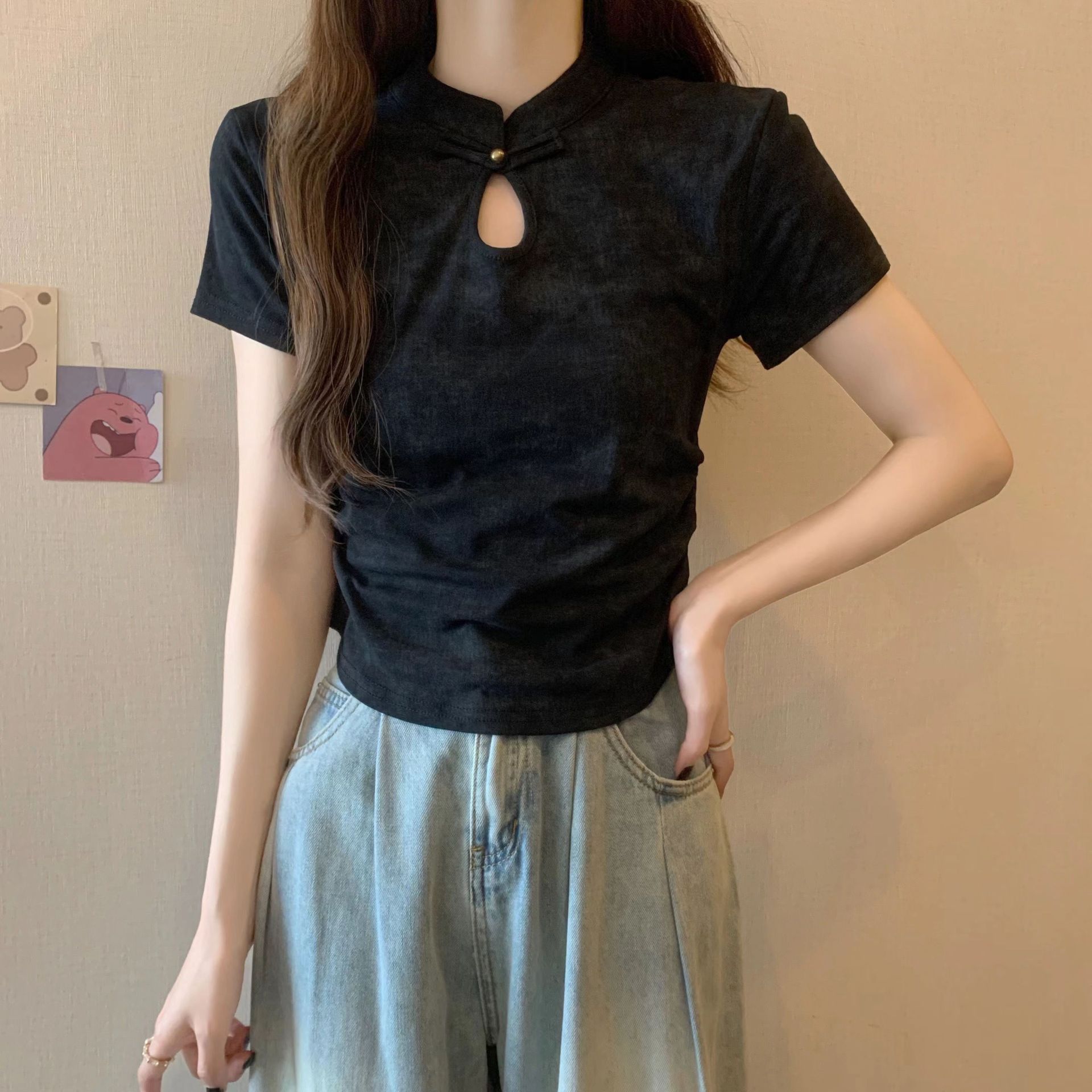 新中式盘扣短袖t恤女2025新款夏装掐腰设计感洋气超显身材的上衣
