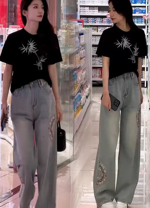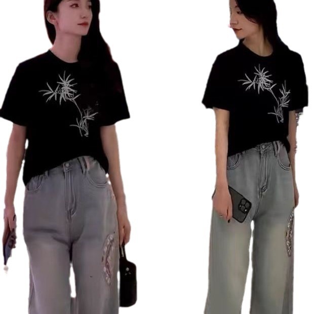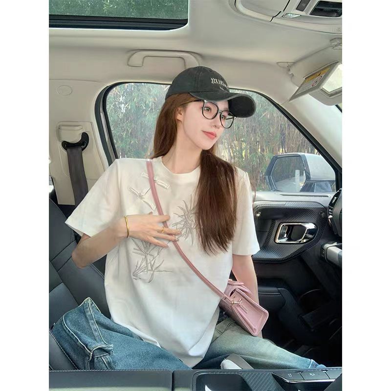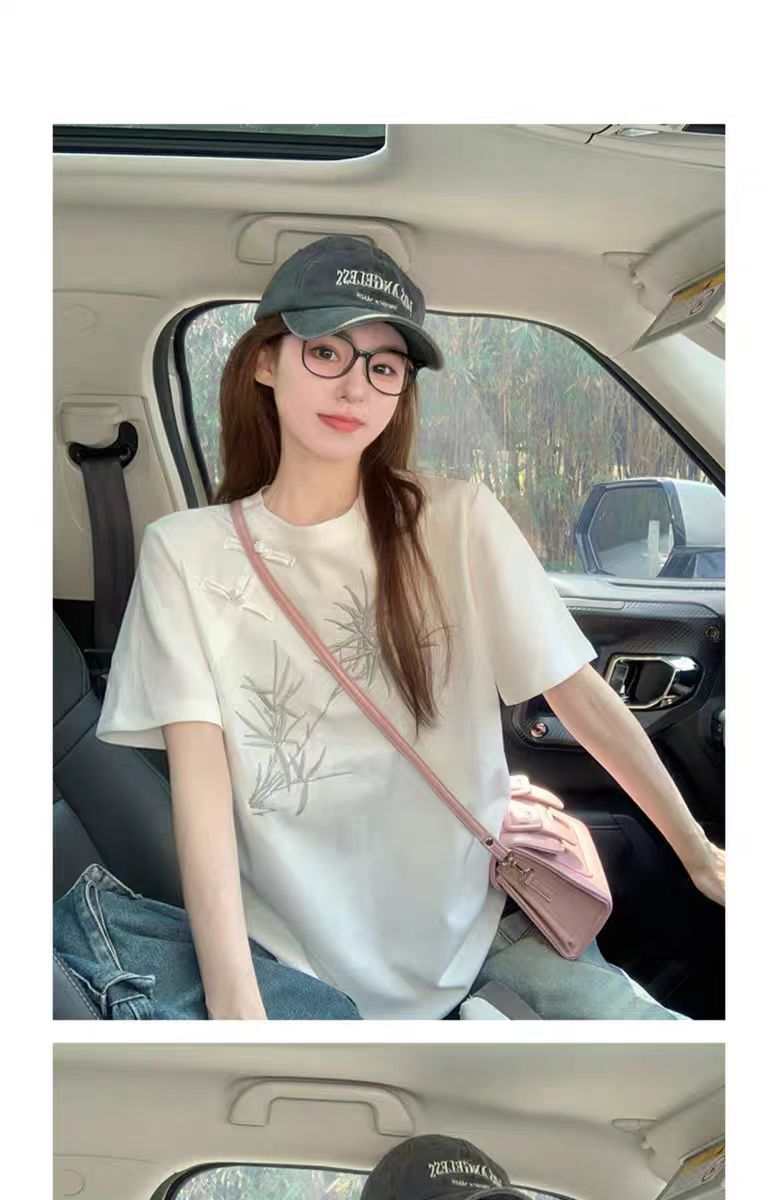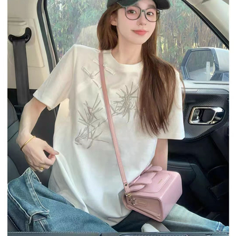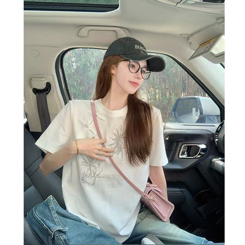 纯棉国风新中式刺绣短袖t恤女春夏季开衫打底衫休闲时尚盘扣上衣