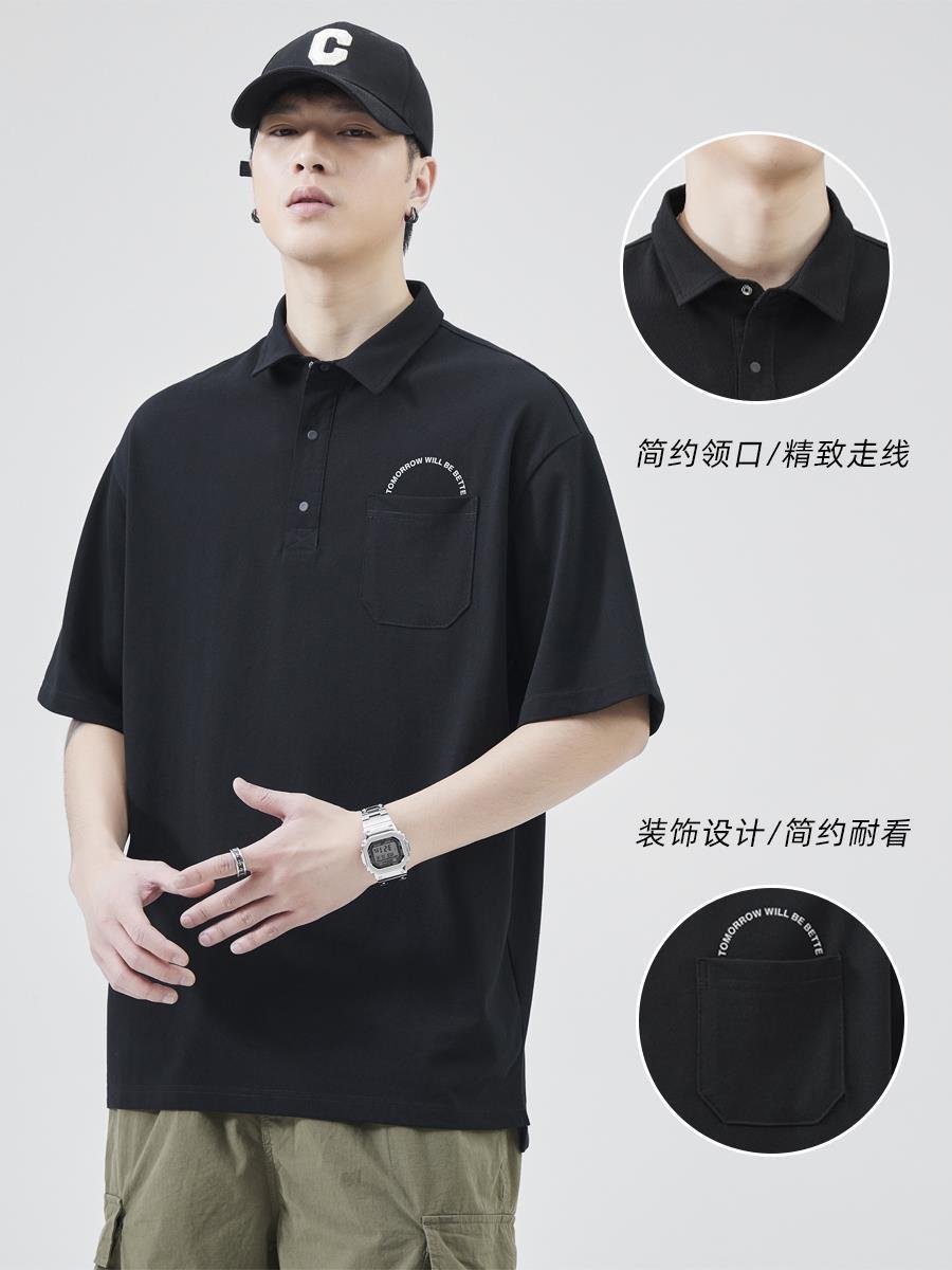 polo衫短袖男士夏季新款潮牌黑色半袖立领感宽松重磅T恤