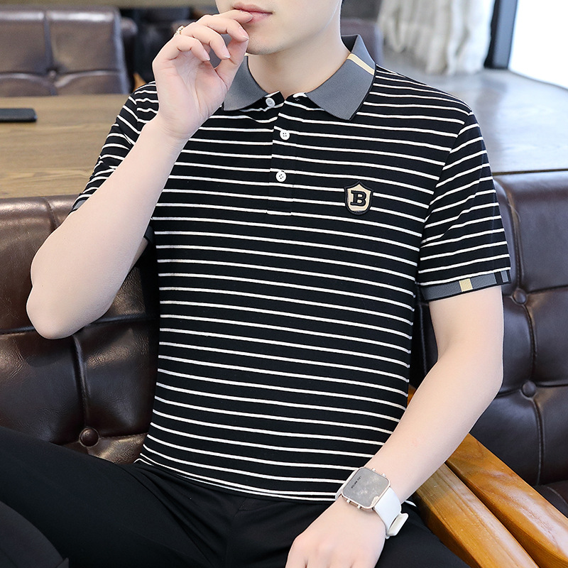 夏天polo衫纯棉体恤商务男装翻领短袖条纹衬衫衣服t恤中年polo潮