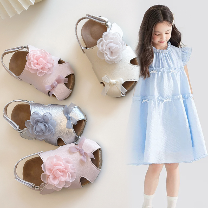 儿童鞋2025夏款女童花朵透气舒适百搭公主风蕾丝仙气鱼嘴舒适凉鞋
