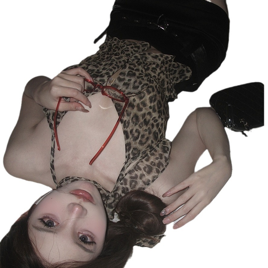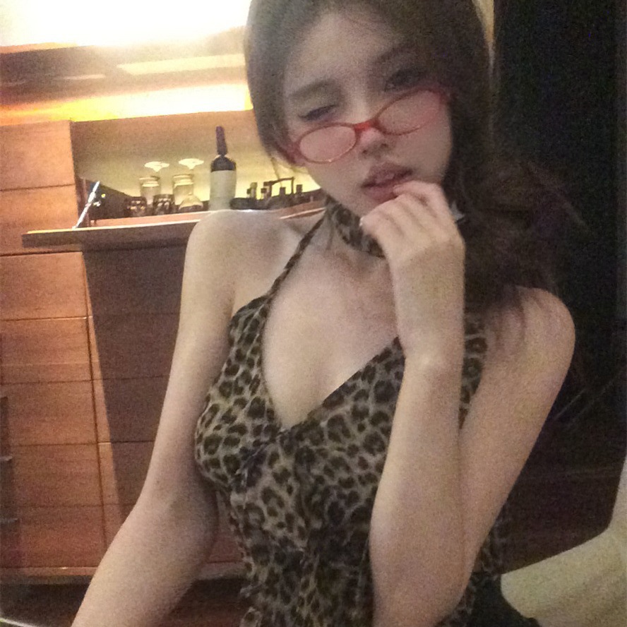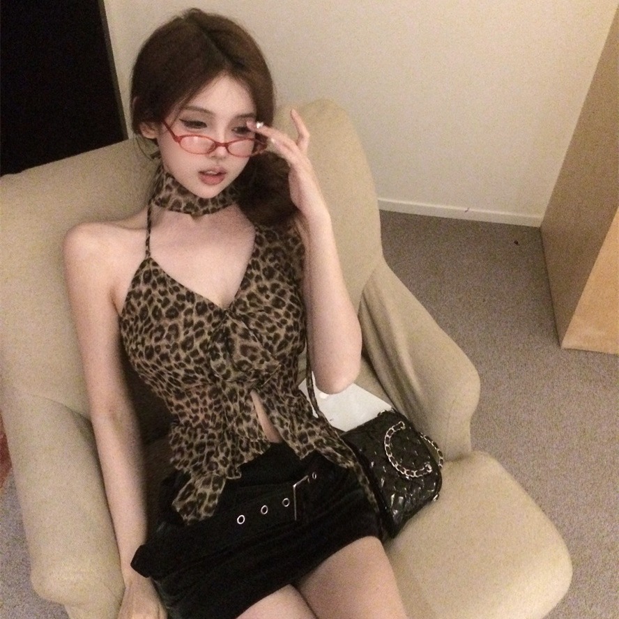 美式辣妹豹纹露背挂脖吊带小背心女夏季紧身内搭短款外穿性感上衣