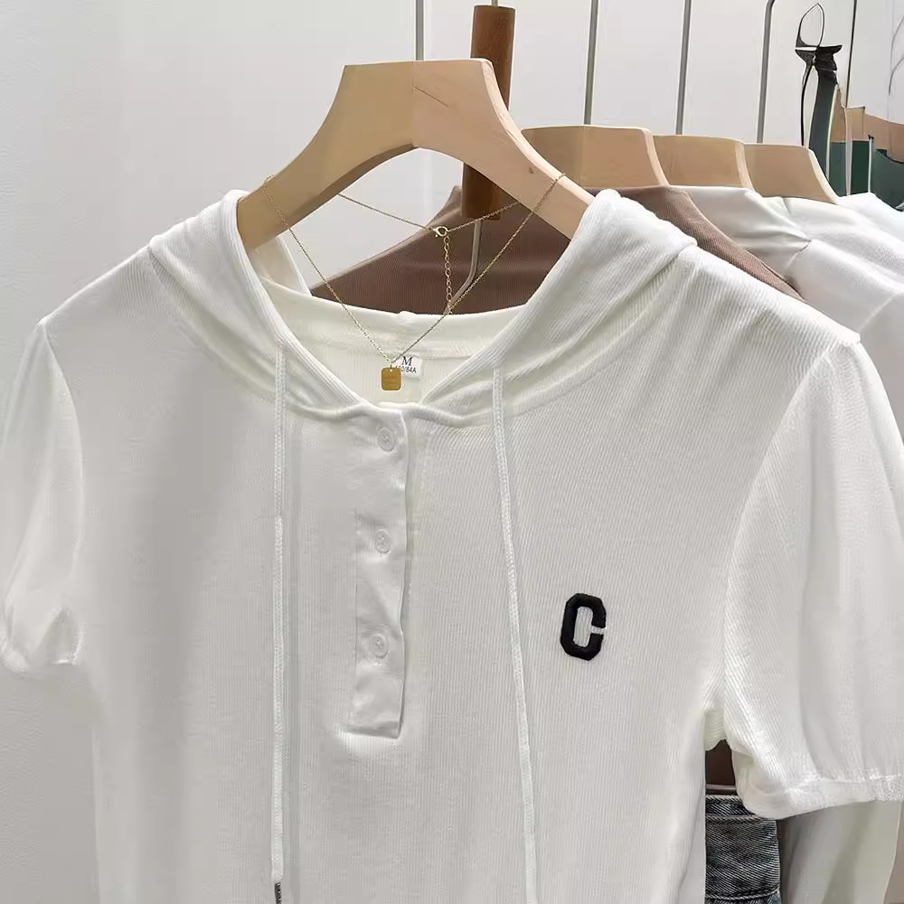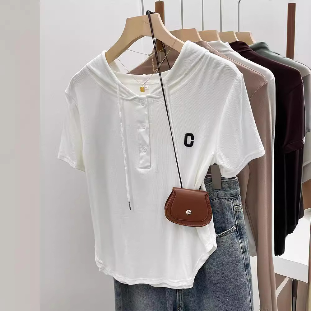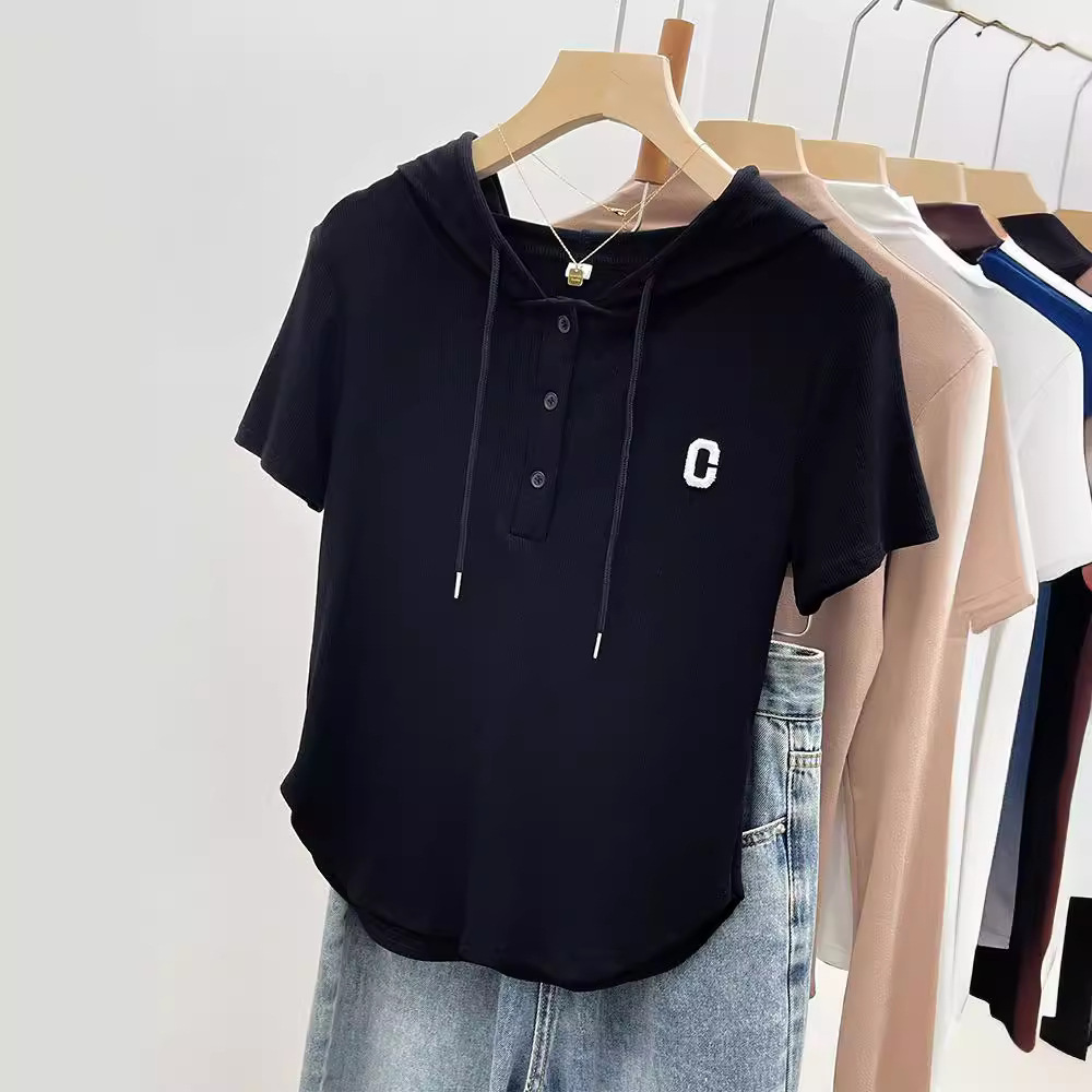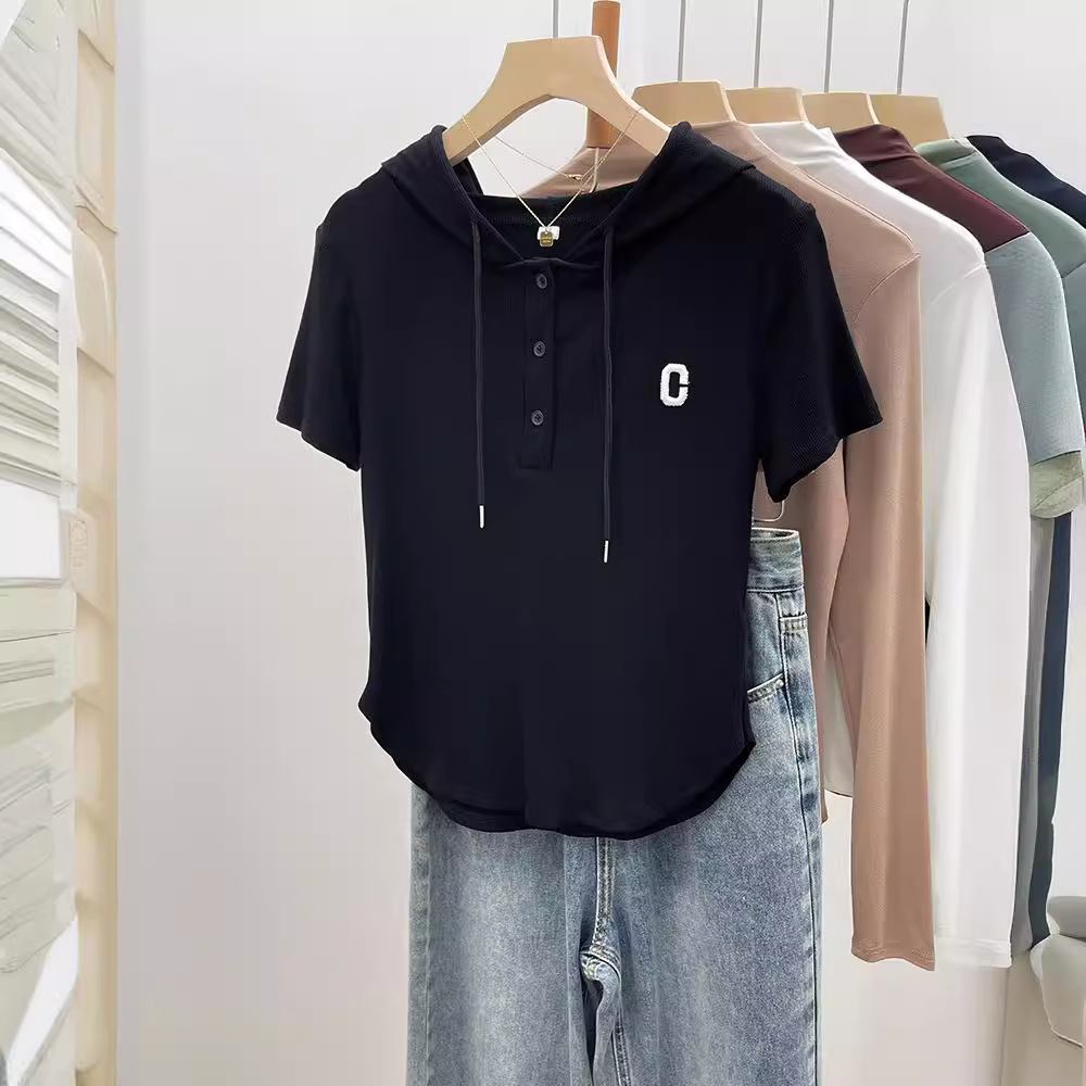 微透250克连帽T恤衫女短袖2025年新款短款上衣春夏冰丝防晒衣欧货