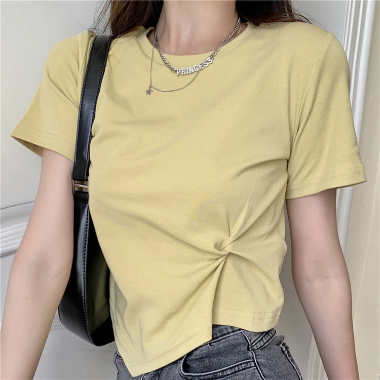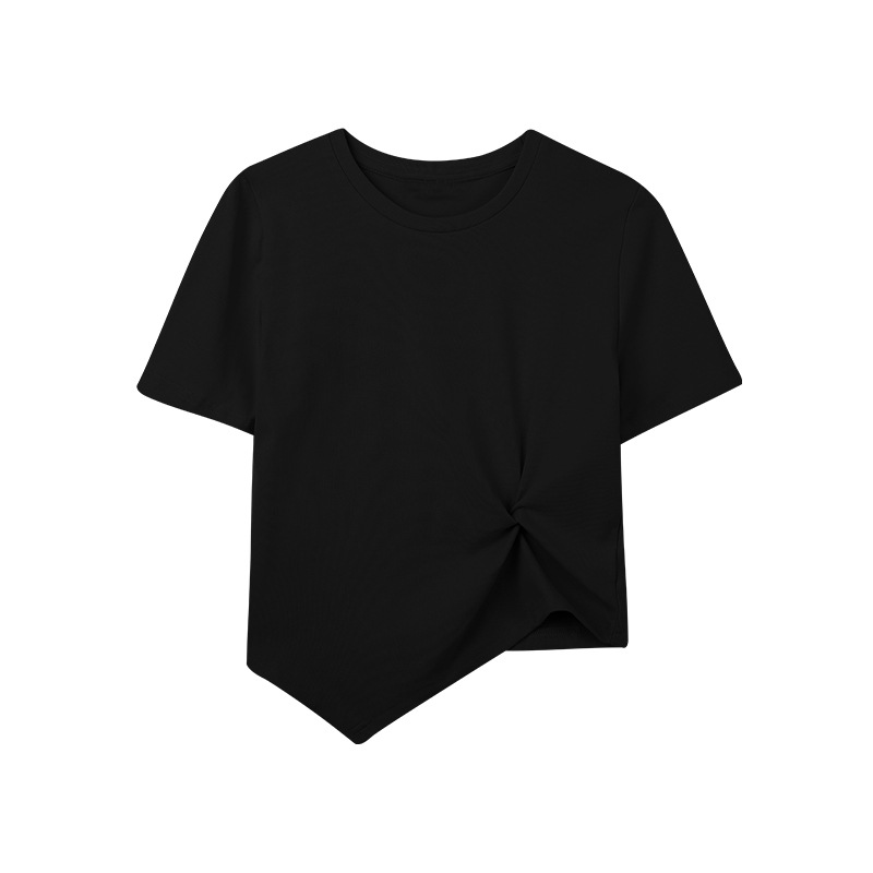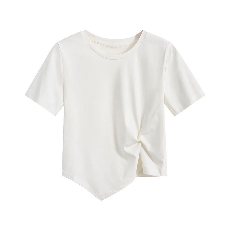 纯棉短袖t恤女2025新款爆款夏装半袖短款不规则设计感小个子上衣
