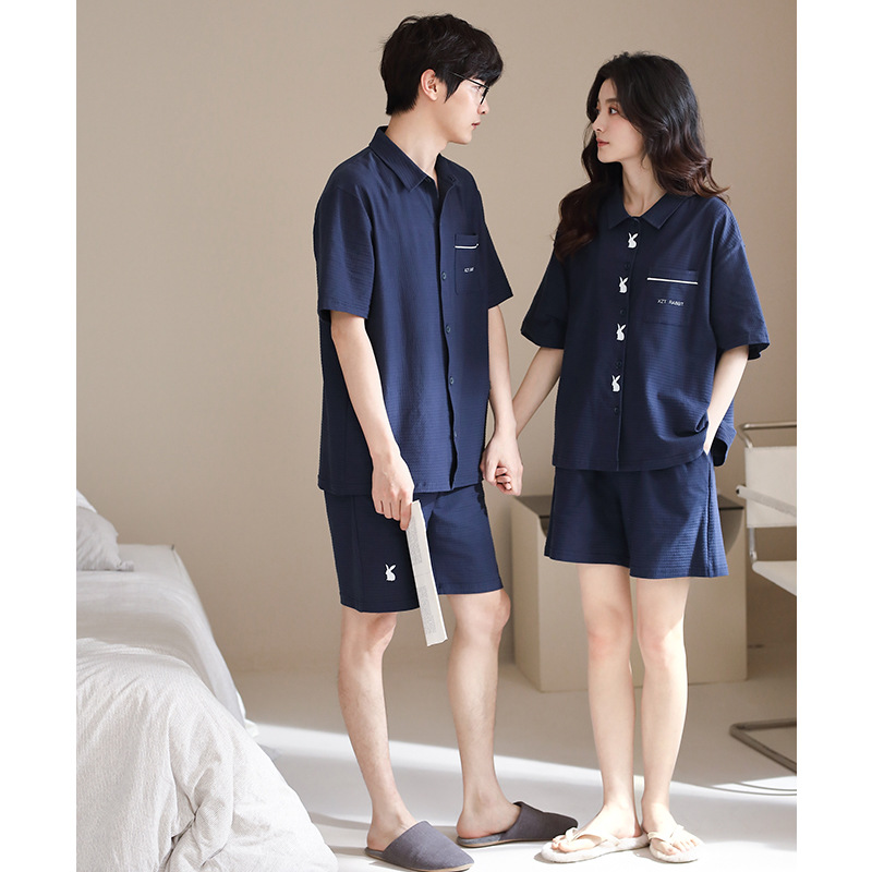 睡衣情侣装纯棉夏季薄款短袖一男一女韩版简约新款家居服夏