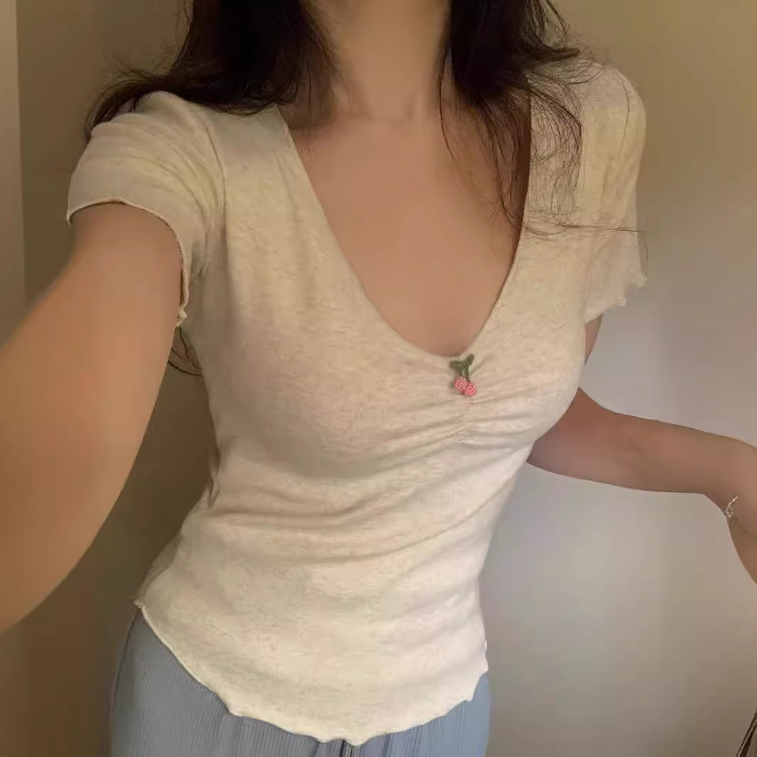 纯欲风性感辣妹短款上衣打底衫内搭设计感小众白色短袖t恤女夏季
