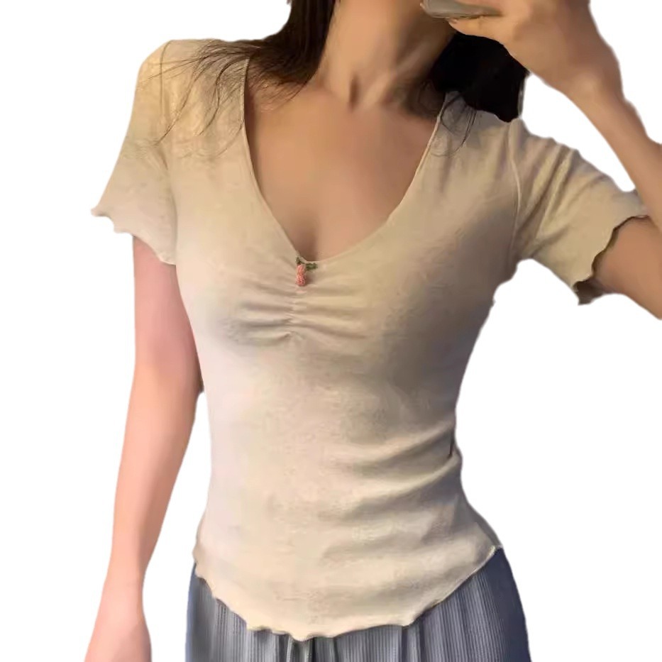 别致短袖t恤女正肩设计感夏装小众心机短款修身鱼骨上衣独特