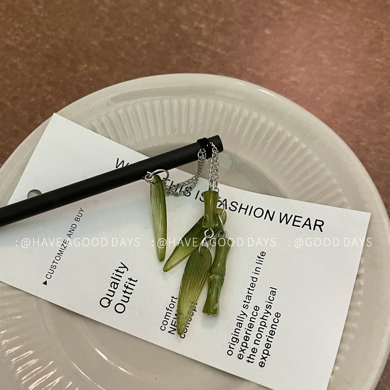 清冷感新中式竹叶流苏发簪气质发钗小众设计感国潮古风头饰高级感
