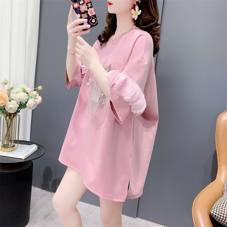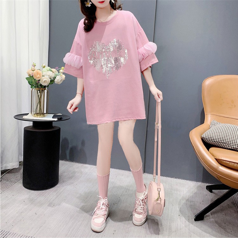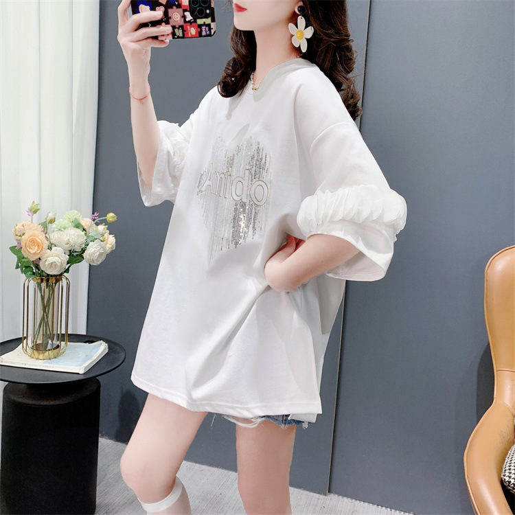 纯棉很仙蕾丝拼接短袖亮片设计感宽松圆领T恤女2025夏季爆款欧货