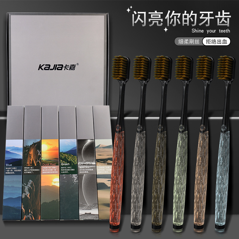 高端贵族软毛牙刷礼盒独立装情侣牙刷家用水晶高密火焰丝牙刷