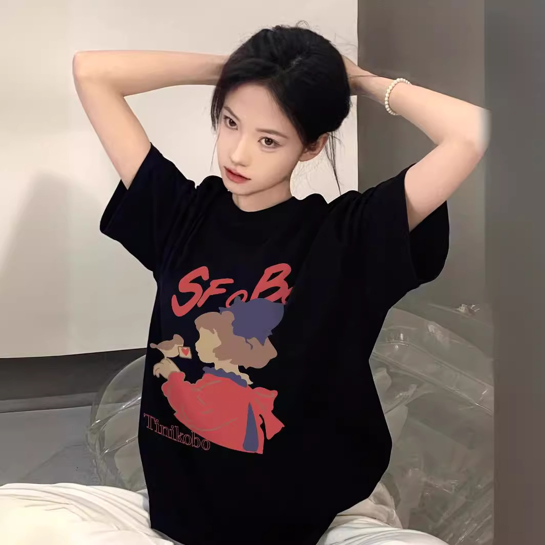 夏季新品小众宽松圆领短袖卡通印花T恤棉花小兔宽松韩风上衣