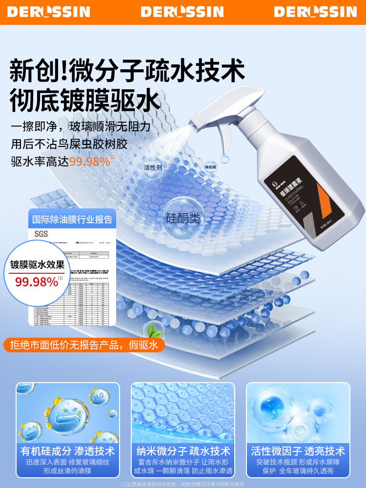 后视镜防雨水喷剂汽车挡风玻璃镀膜去油膜去除剂防雾驱水清洁神器
