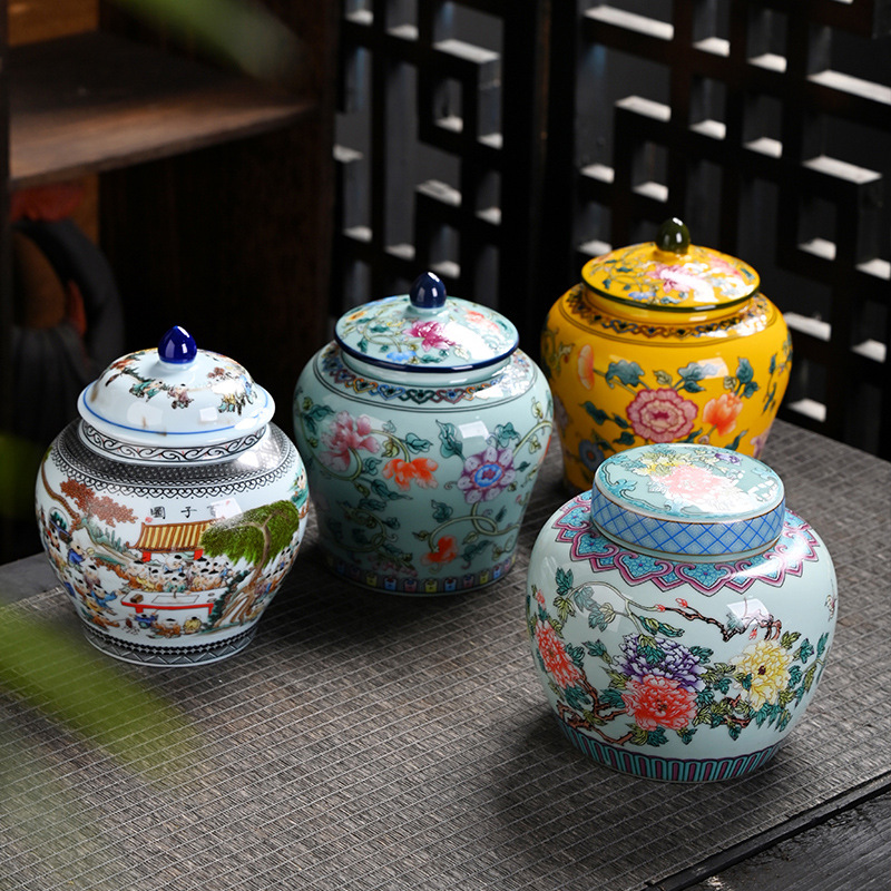 将军罐中号陶瓷茶叶罐防潮密封罐新中式绿茶家用储物罐