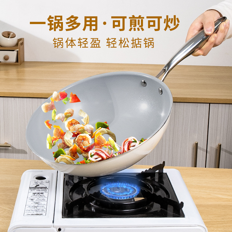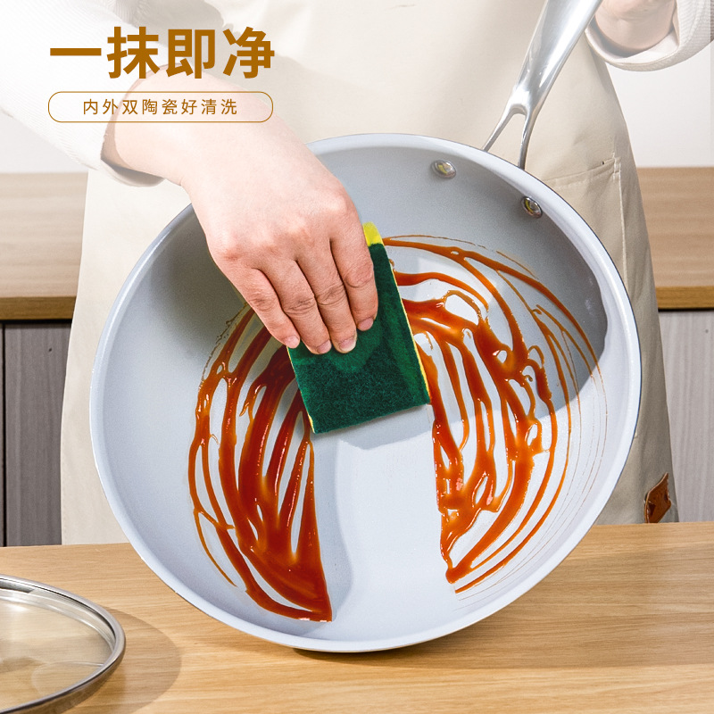 内外双陶瓷炒锅网红不粘锅家用轻油烟煎炒锅电磁炉燃气灶通用