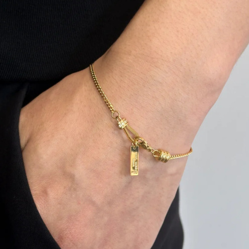 美式潮流极简个性男生复古手链时尚潮流手饰百搭小众设计手串手镯