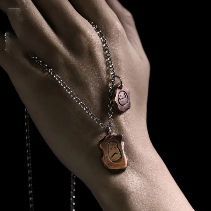 《没头脑和不高兴》趣味笑脸吊坠情侣小众项链做旧轻奢高颜值颈链