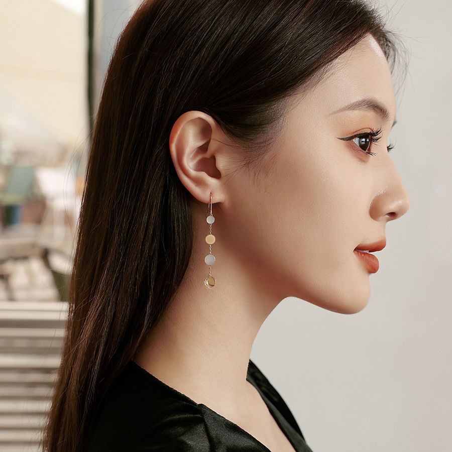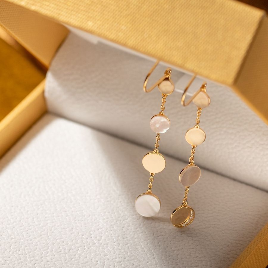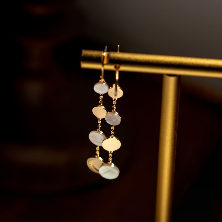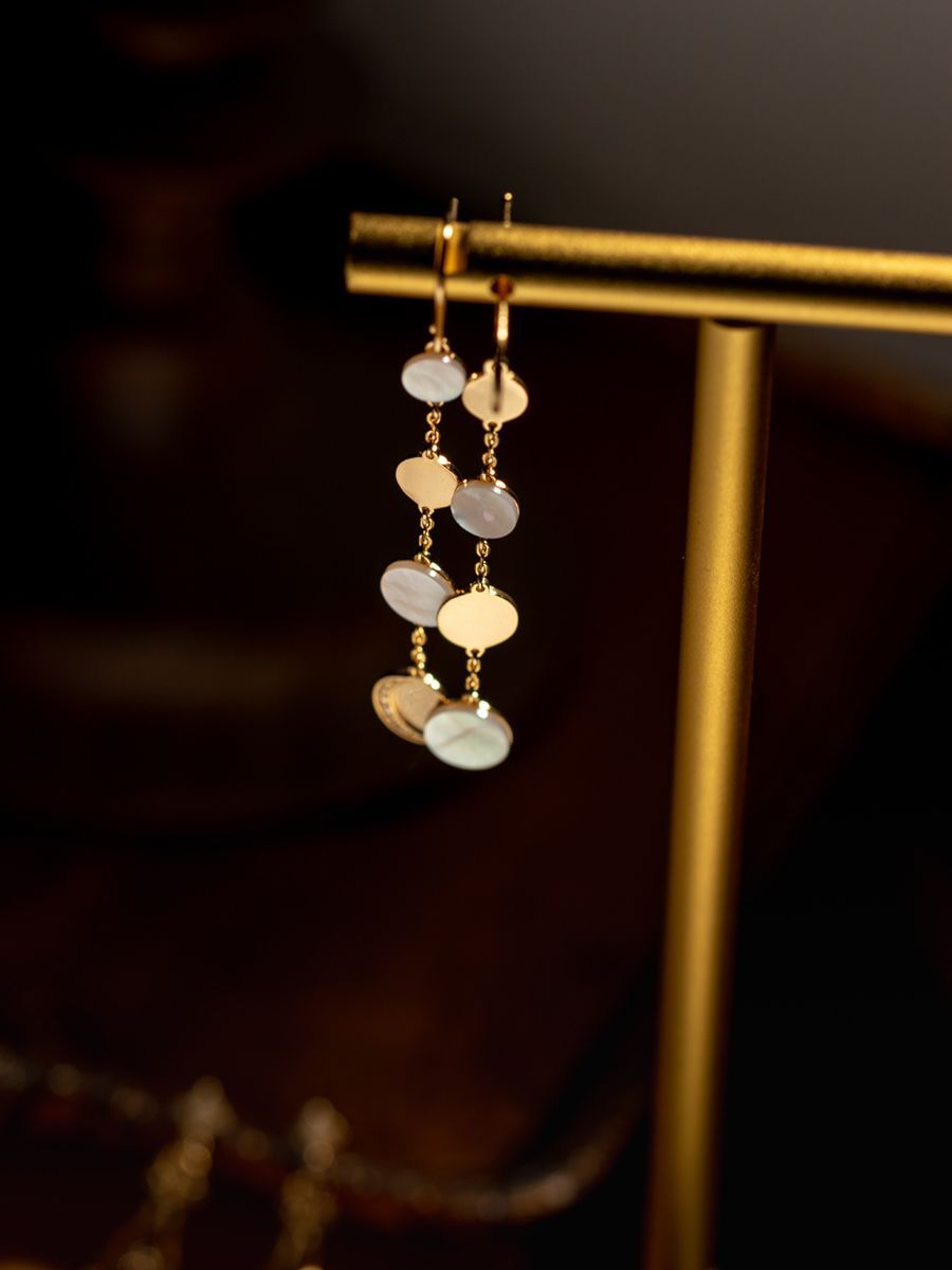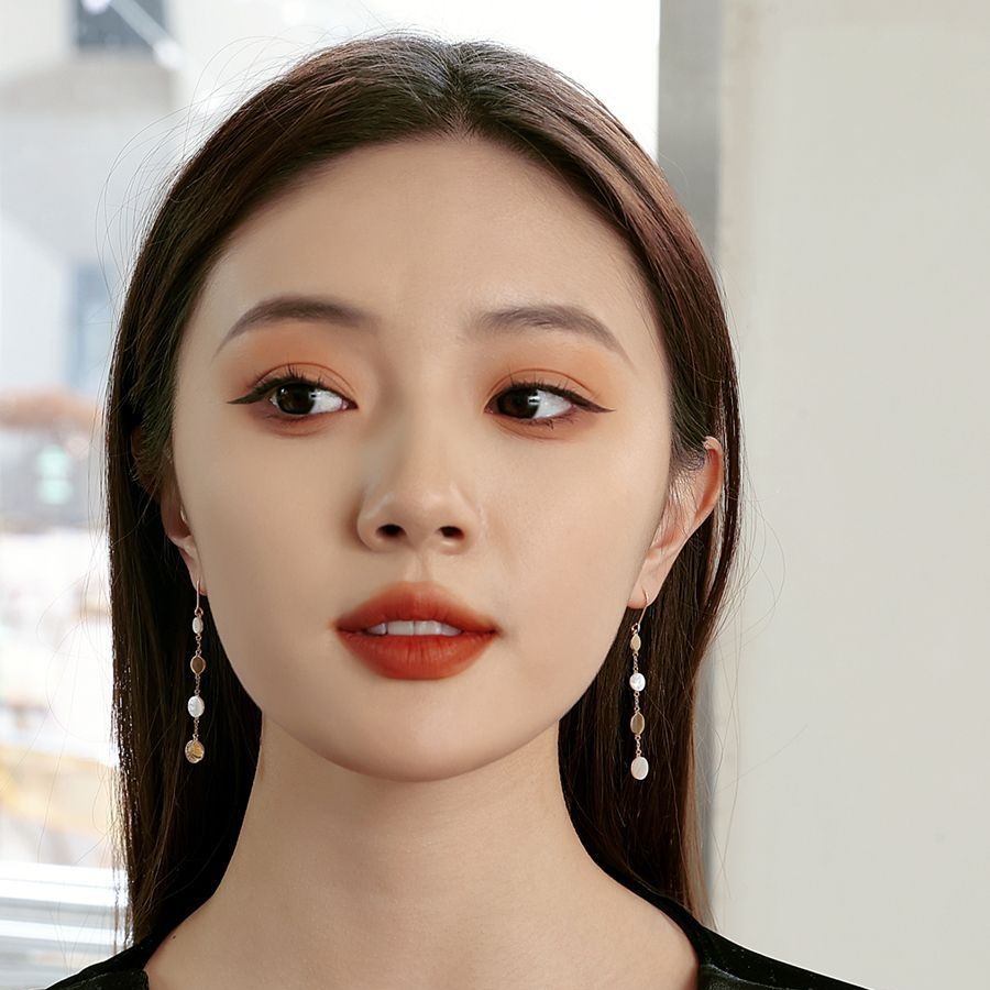 山令先森!法式白贝母耳坠高颜值轻奢气质耳钉时尚长耳线耳饰耳环