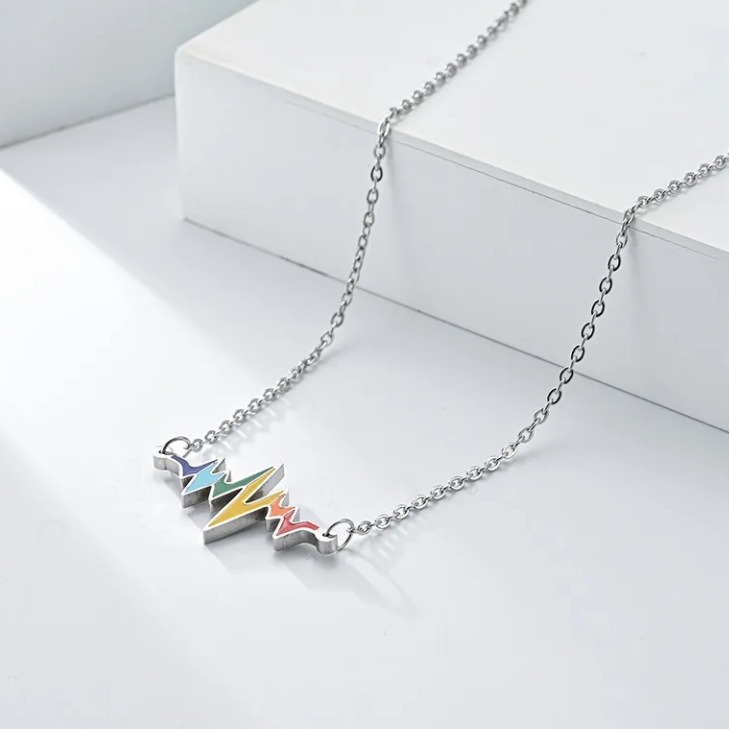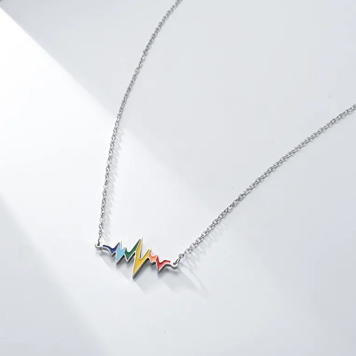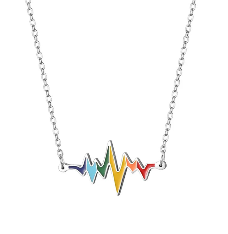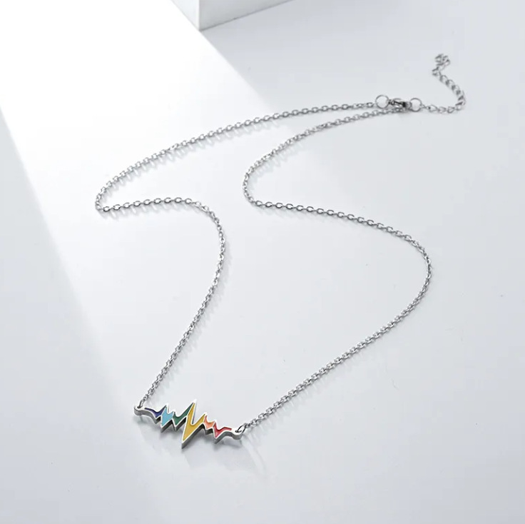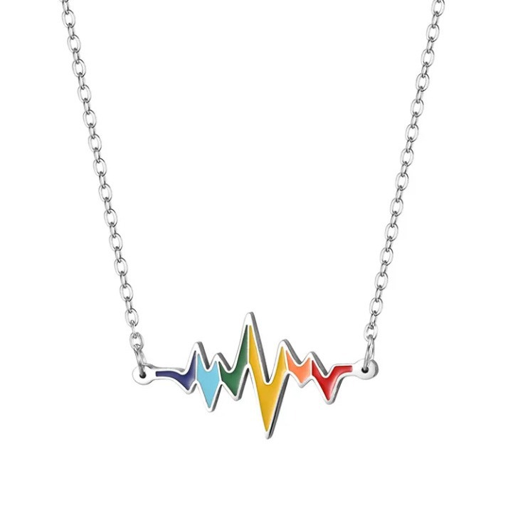 韩式潮流个性心电图满格吊坠心跳彩虹心动项链痞帅高颜值情侣颈链