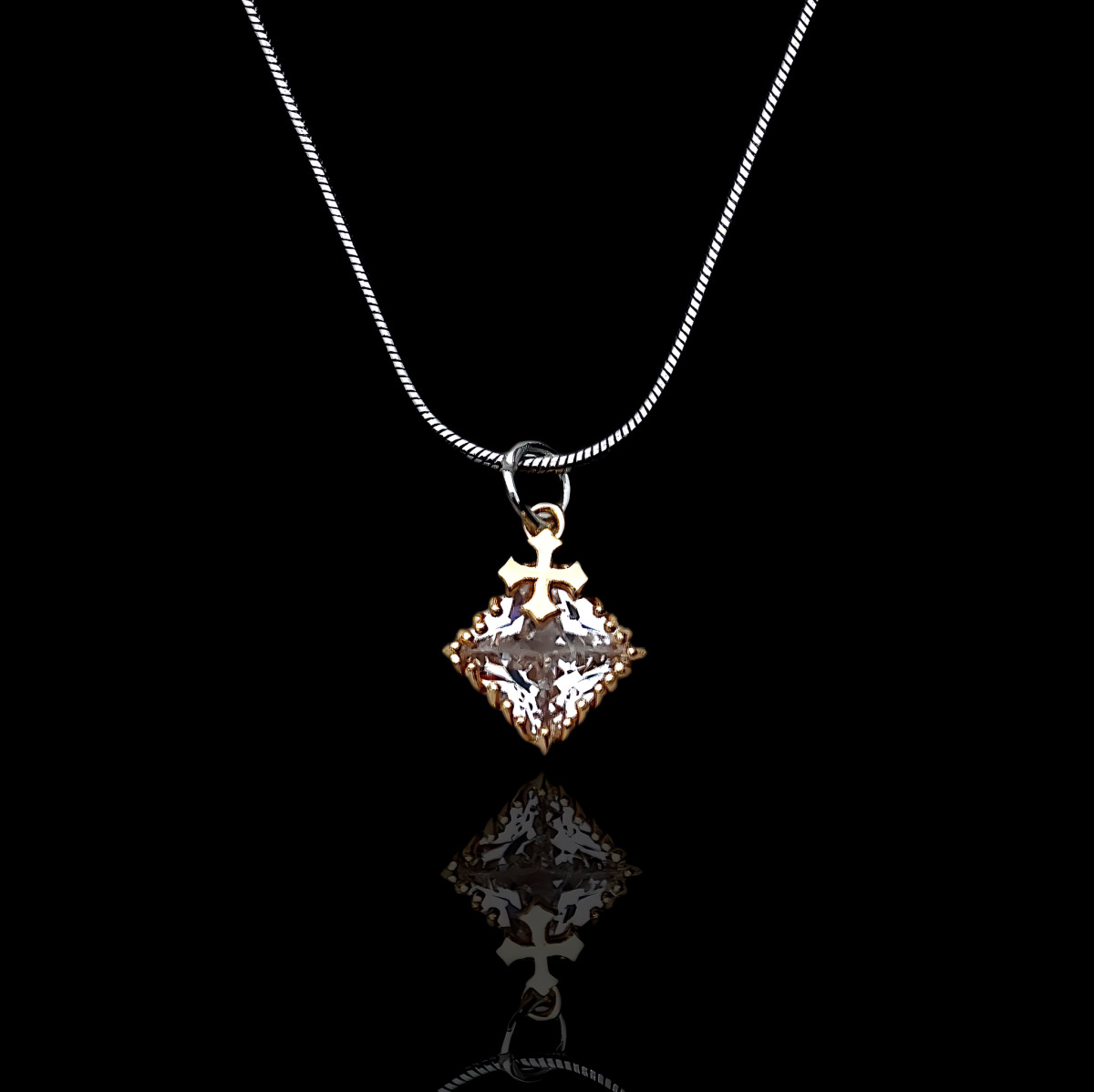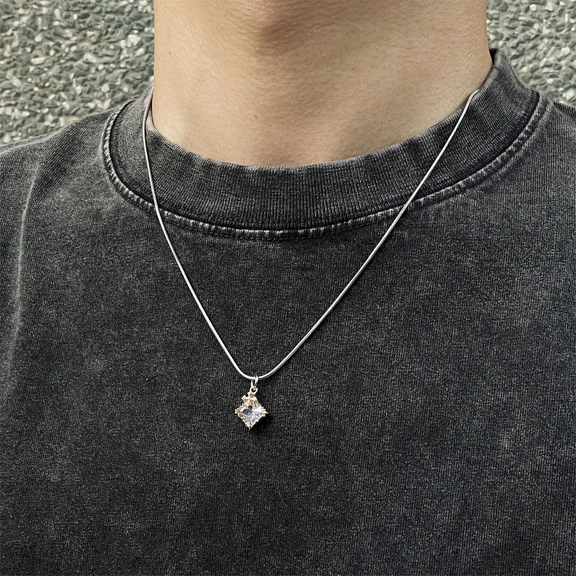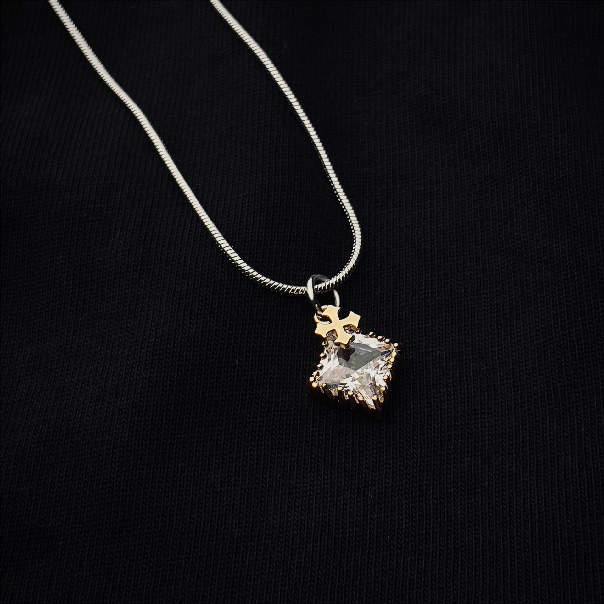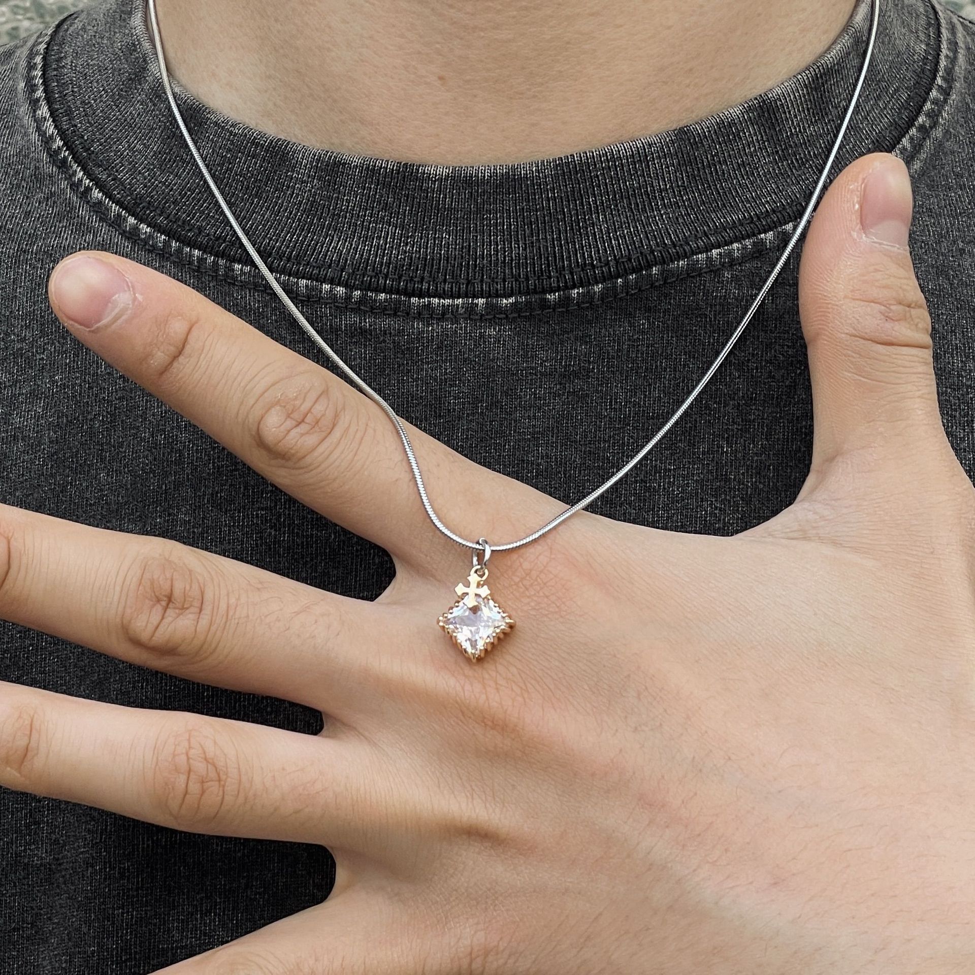 锆石十字架吊坠美式潮流个性项链轻奢百搭简约情侣颈链小众锁骨链