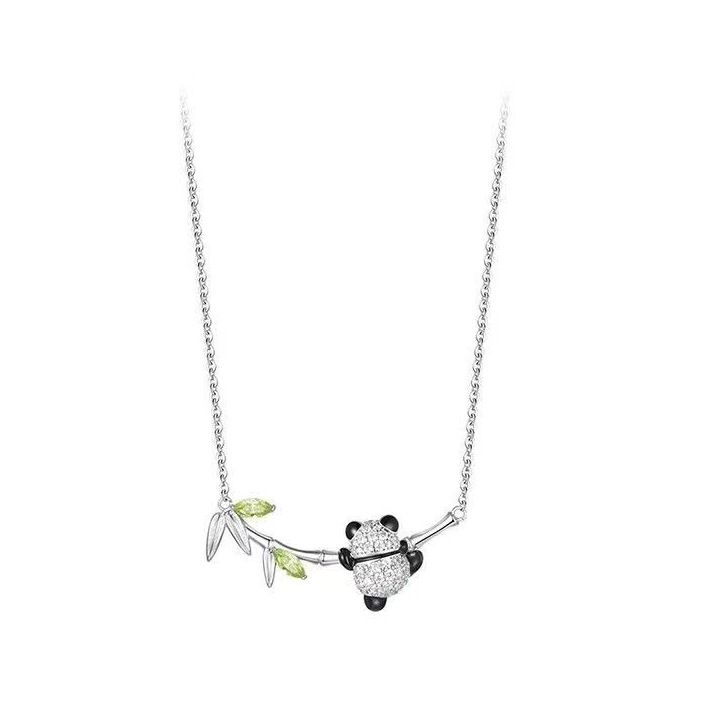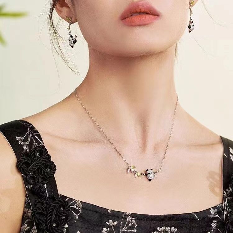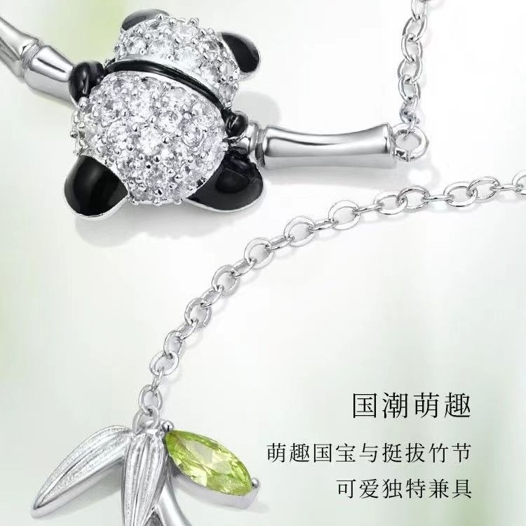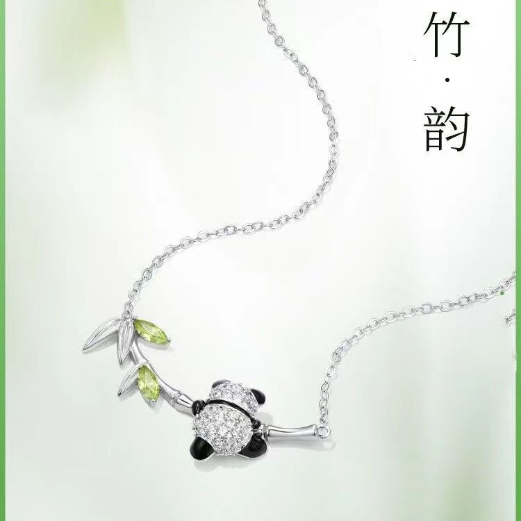 甜美风可爱熊猫竹节项链新中式竹韵简约小巧颈链高级感轻奢锁骨链