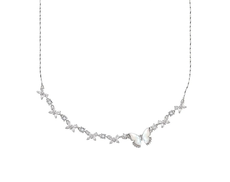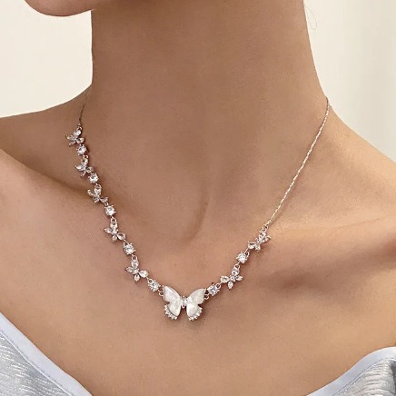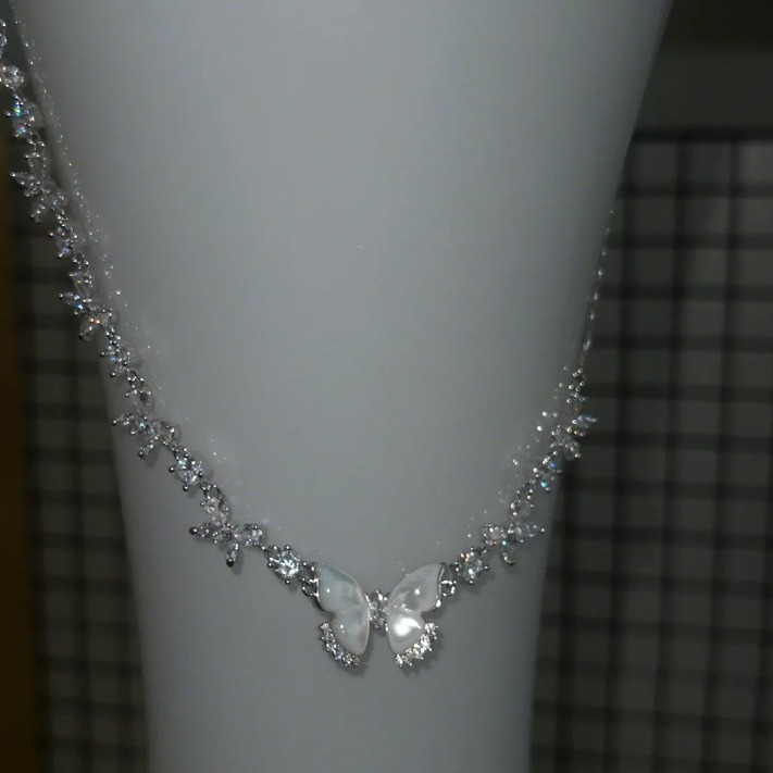 小香风白贝母锆石蝴蝶吊坠项链轻奢时尚高级感锁骨链小众通勤颈链