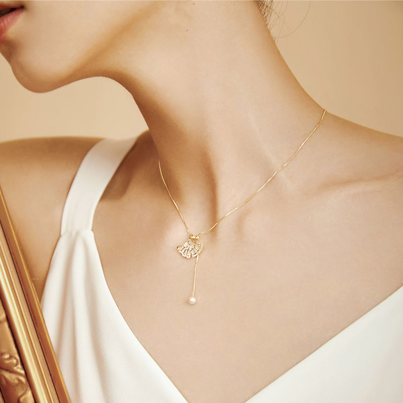 时尚小众设计简约银杏叶项链百搭轻奢高级感锁骨链小香风卫衣颈链