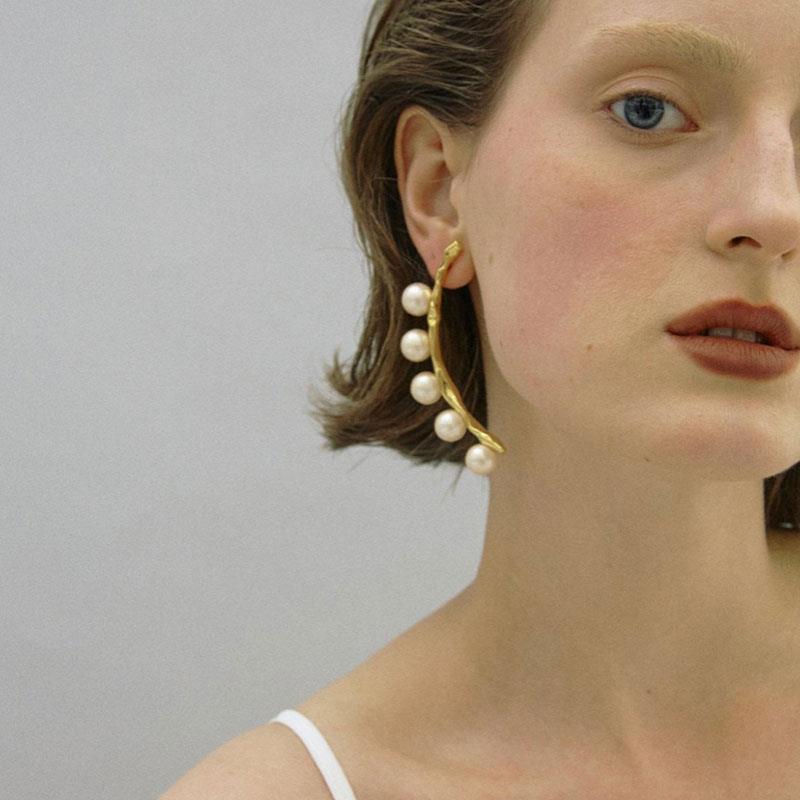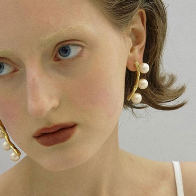 法式夸张不对称珍珠耳钉时髦百搭高级感耳饰欧式重工复古耳坠耳环